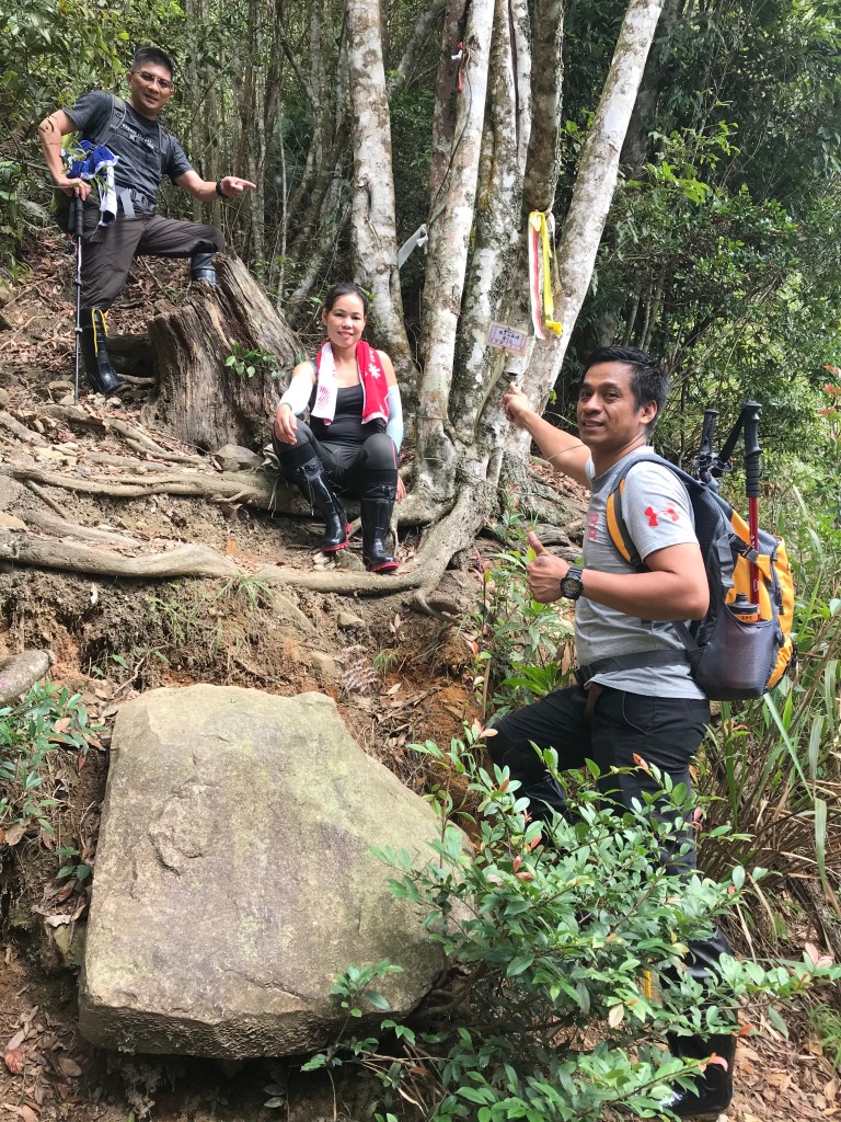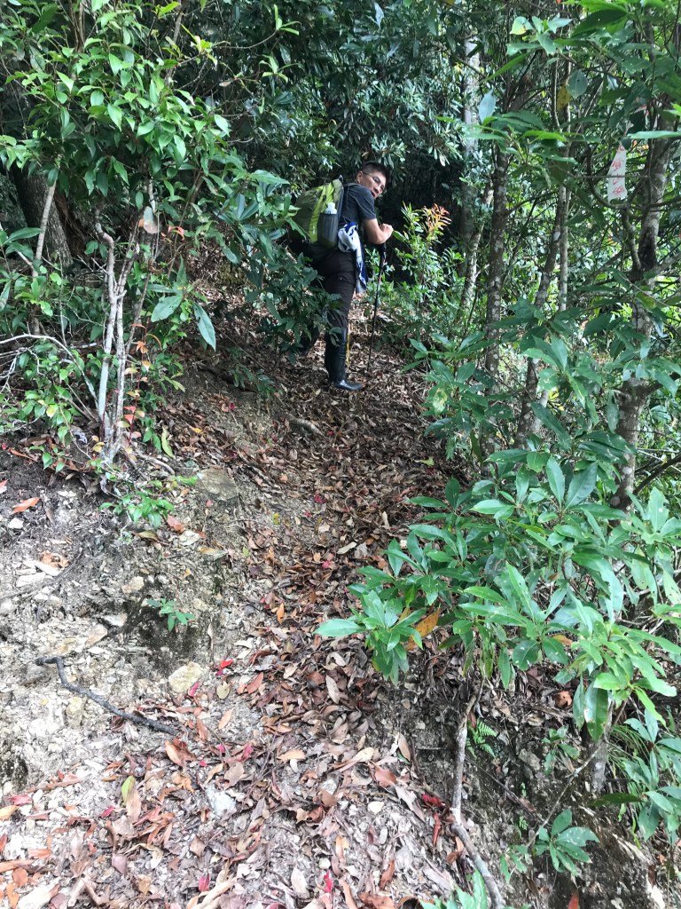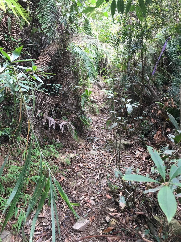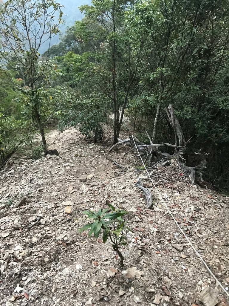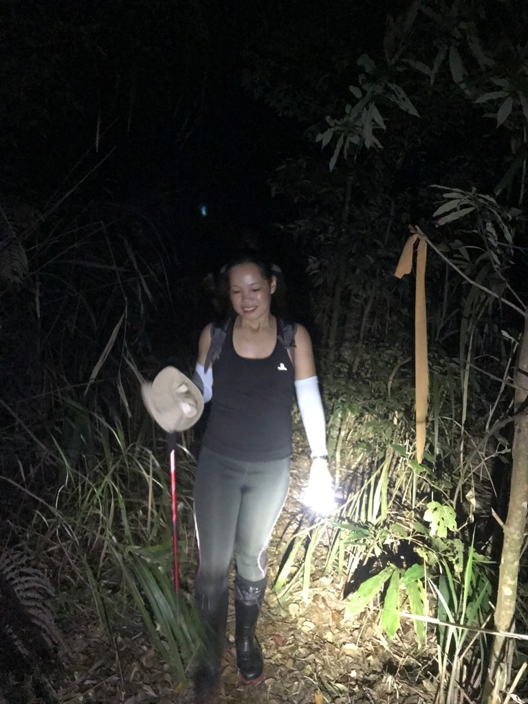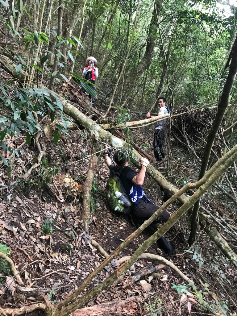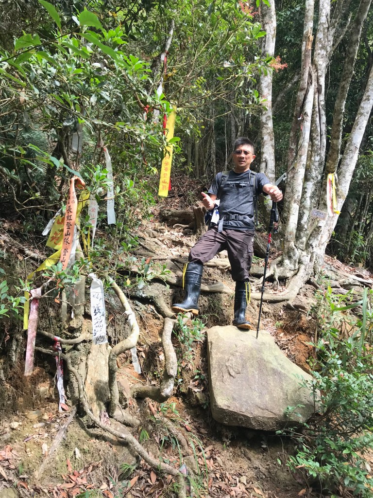 一開始在這一段路徑上有莫名其妙回走現象時,我個人內心有震驚了一下,事前我並沒有告訴其他三人,在這一段路徑上發生過的奇怪事件。但冷靜回想,此時大伙不想摸黑太久,走得又比較快,因此個人相信在過髮夾彎時,Smile一定沒有注意到方向,僅看到登山布條就跟著走,而不小心又往回守關山的方向。在此段耽誤了40分鐘。