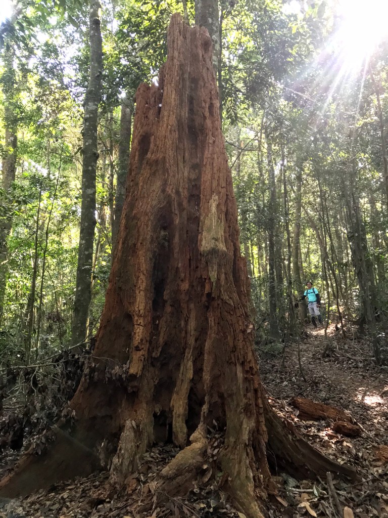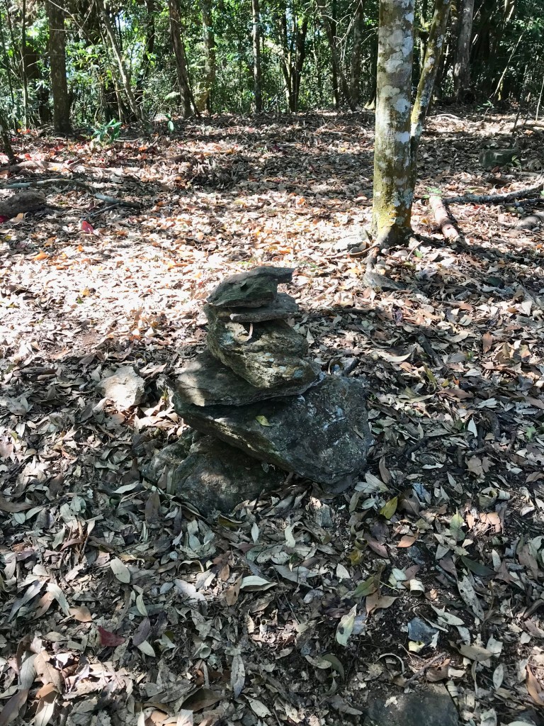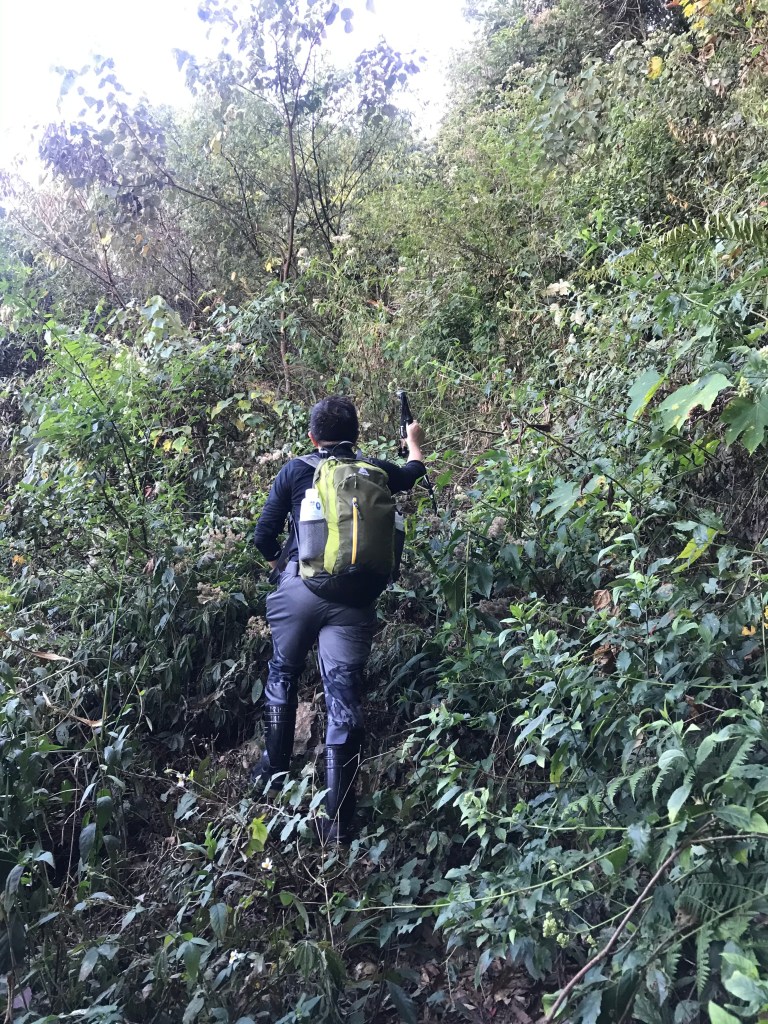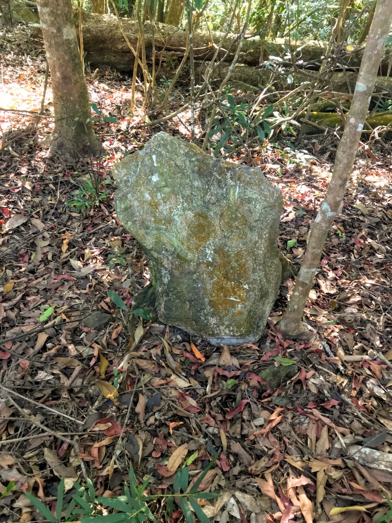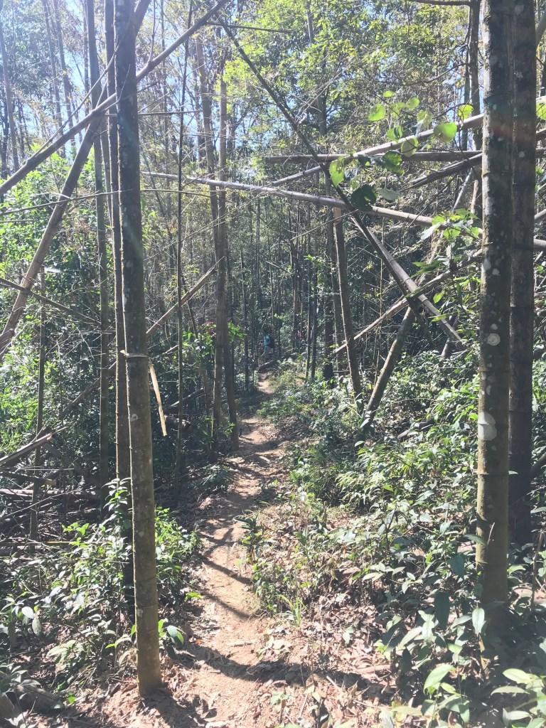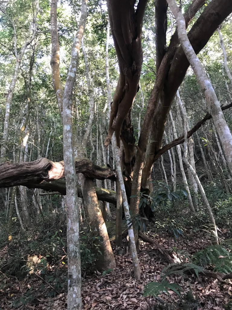 過了板仔寮山三角點,往舊武界山三角點前,路徑好走但仍持續陡上,到了舊武界山三角點時,已經快11點了(才約走了快7K),我有點擔心,今天可能又要用上頭燈了,從舊武界山三角點,一直到獅凸魯山(里程約第13K),除了快接近獅凸魯山的一小段外,大半路徑都非常好走。這段路上,我們的超級馬利歐(Mario)(腦海裏一直迴繞出現電視遊樂器中,過關的聲音),頭也不回,帶領著我們一直往前衝,雖然我氣喘呼呼的勉力跟上,但也很感謝Mario的衝勁,這時是下午兩點半。這其中我們在武界越山主峰花了40分鐘吃午餐,休息、拍照。