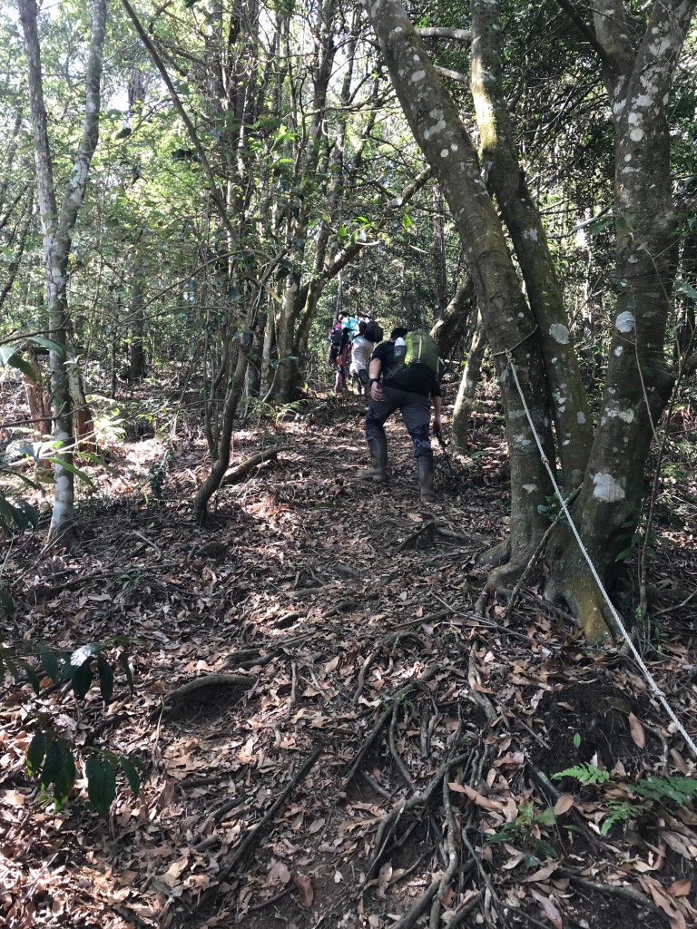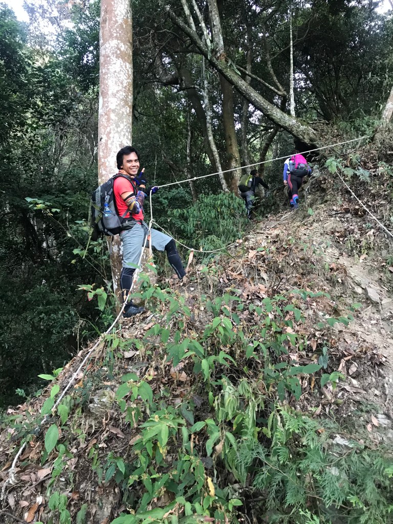 今天我們非常開心,因為多了一位年輕的伙伴,菲律賓籍的Mario要加入。但是,也存在另一個隱憂,就是Smile在2019-11-10 宜蘭太平山:望洋山+山毛櫸國家步道+銅山 🦋花蝴蝶🦋的行程中,摔了一跤導致左手肩骨骨折仍未痊癒。行前我一直反對,但是Smile興致高昂,只靠言語實在難以說服。再加上行前判斷今天的路程除了較長外,需要陡上拉繩的路段不多,因此就順從她的固執而成行。當然,Smile的裝備就由Elmer、Mario與我(Gosen)三人分攤。