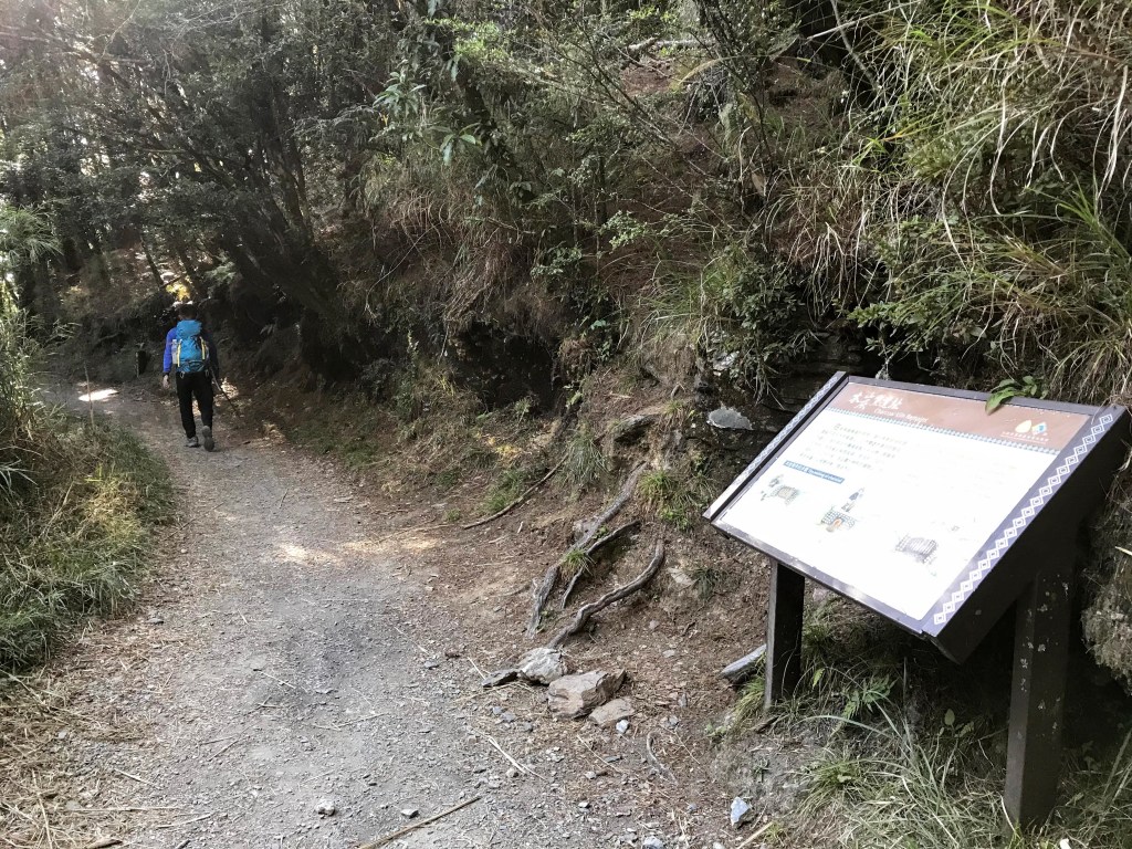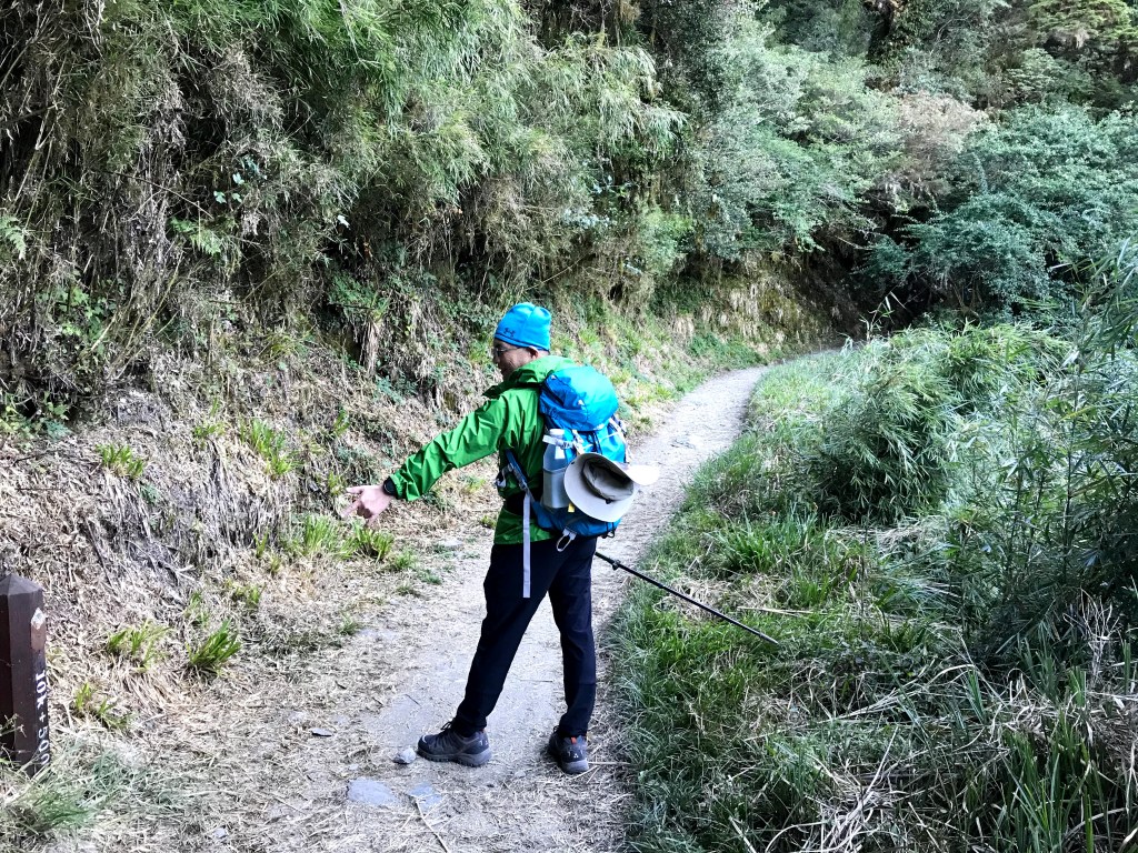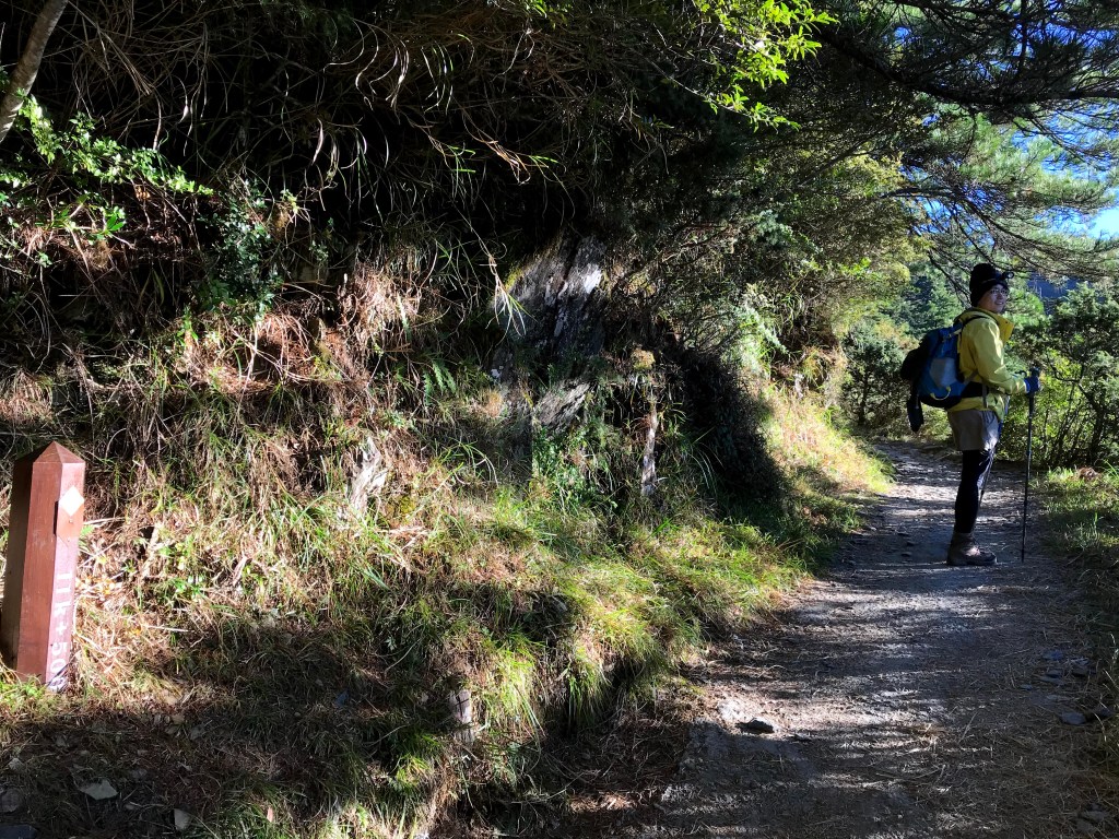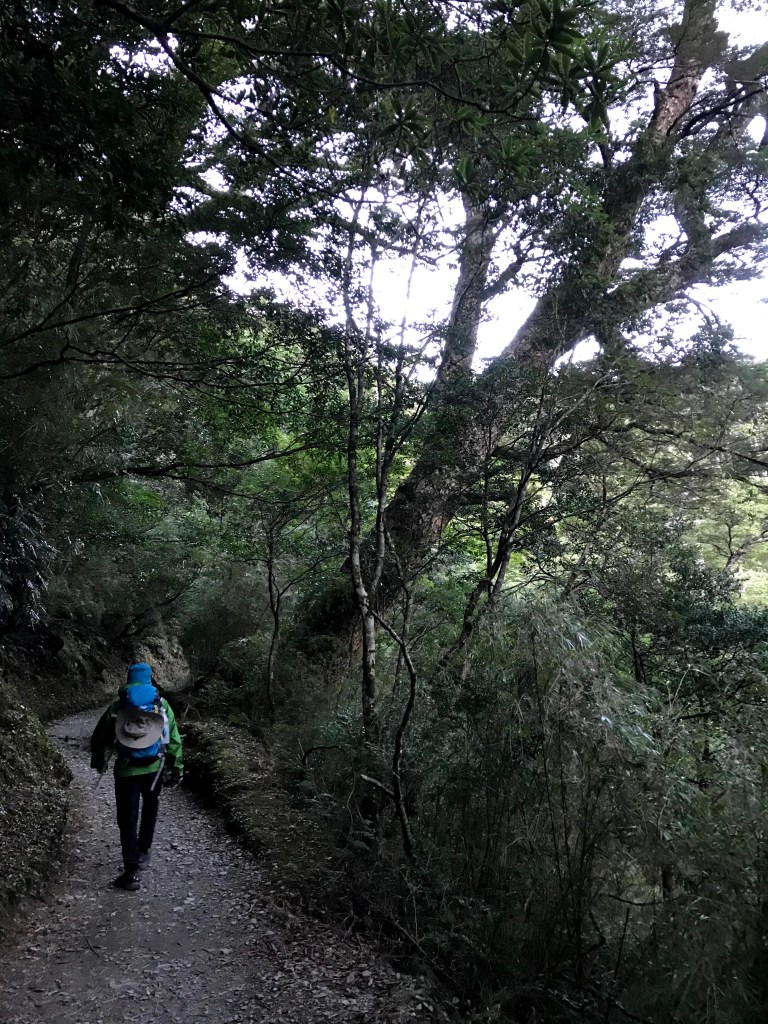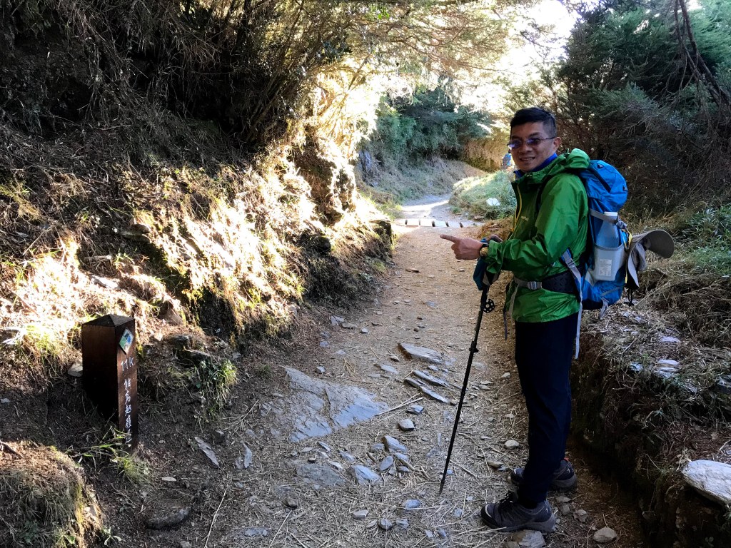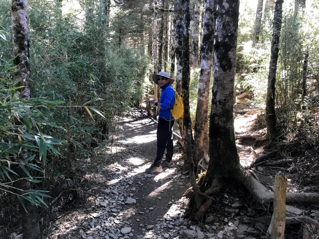 當我們由奇萊南峰下來往南華山的過程中,我們又遇到林先生了!原以為林先生也許無法走完全程,沒想到原來林先生先去了南華山再來轉攻奇萊南峰,爬山這樣的運動,果然不分年齡、性別,總在細微處存有驚奇!在奇萊南峰下山過程中,David也告知Smile與我(Gosen),他的舊疾復發了,也就是他的屁股又開始微微陣痛,其實就是職業病,身為精算師在電腦前的長時間工作習慣,再加上很有責任感的工作狂,已經造成他的尾椎長年(其實David也才32歲啊)的不適!我常建議他,打電腦時乾脆都不要坐站著打!因此David就在奇萊南峰下來的中途與我們兩人分道揚鑣,還好由此回到登山口都是路徑明確平坦的型態,我們約好在林道中會追上他。