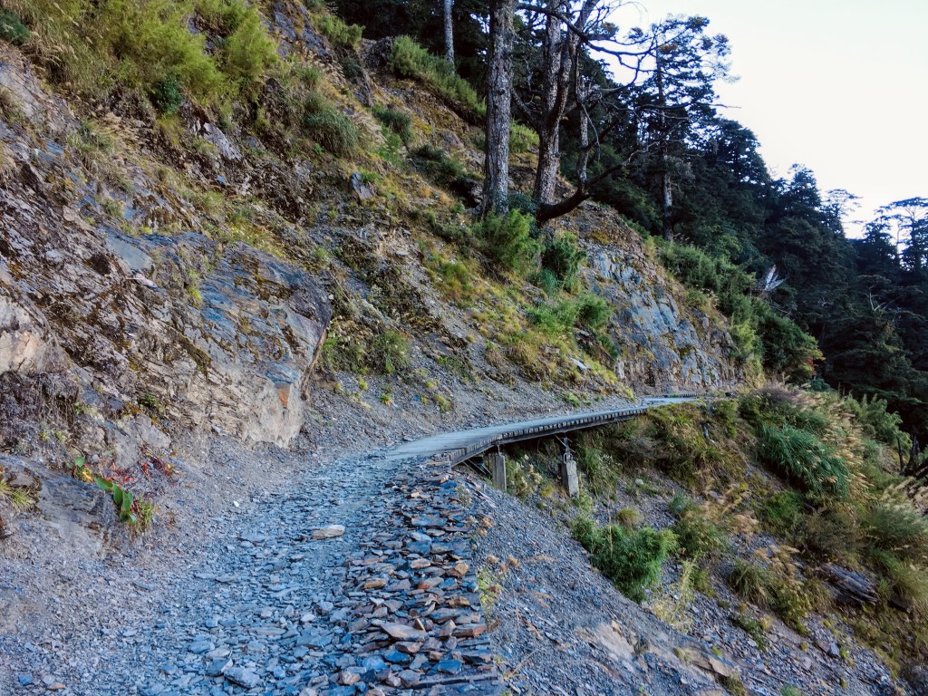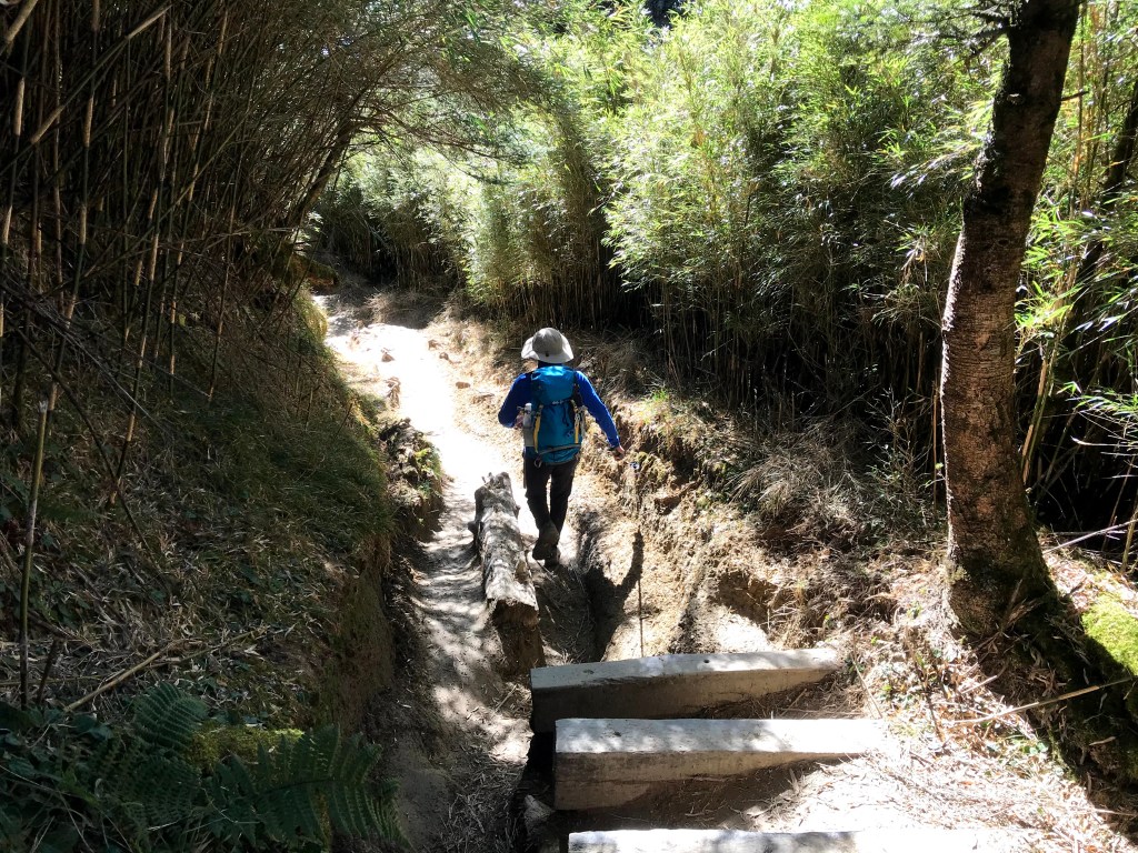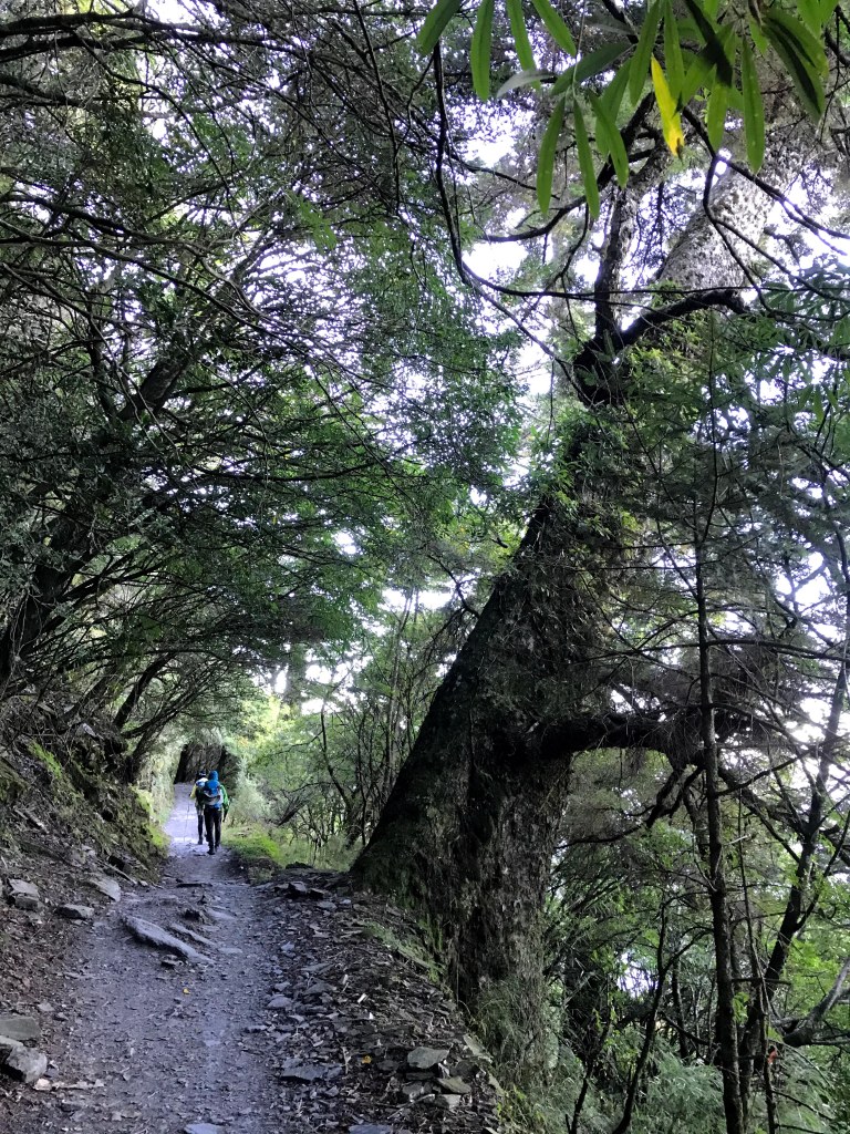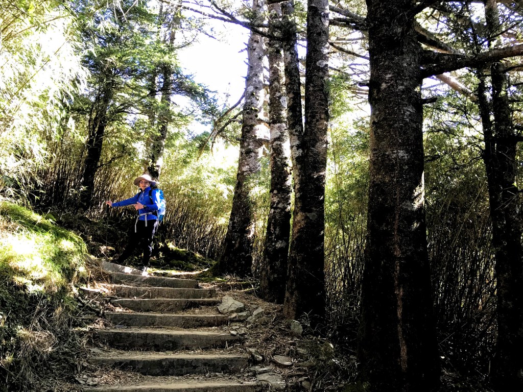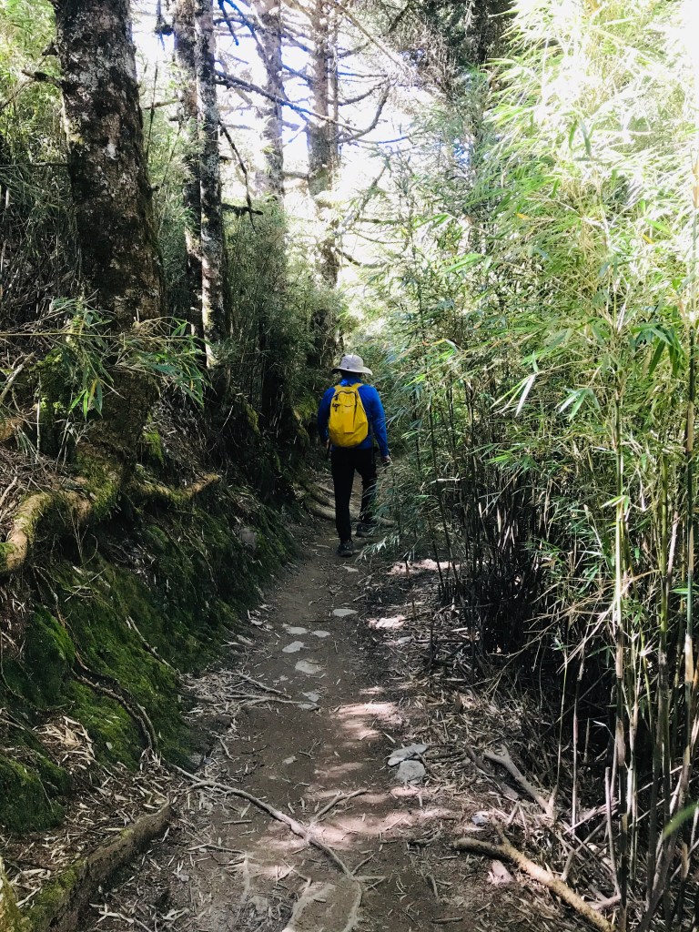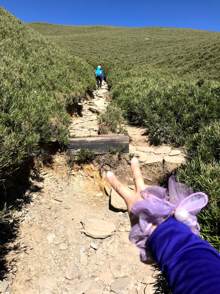 當我們由奇萊南峰下來往南華山的過程中,我們又遇到林先生了!原以為林先生也許無法走完全程,沒想到原來林先生先去了南華山再來轉攻奇萊南峰,爬山這樣的運動,果然不分年齡、性別,總在細微處存有驚奇!在奇萊南峰下山過程中,David也告知Smile與我(Gosen),他的舊疾復發了,也就是他的屁股又開始微微陣痛,其實就是職業病,身為精算師在電腦前的長時間工作習慣,再加上很有責任感的工作狂,已經造成他的尾椎長年(其實David也才32歲啊)的不適!我常建議他,打電腦時乾脆都不要坐站著打!因此David就在奇萊南峰下來的中途與我們兩人分道揚鑣,還好由此回到登山口都是路徑明確平坦的型態,我們約好在林道中會追上他。