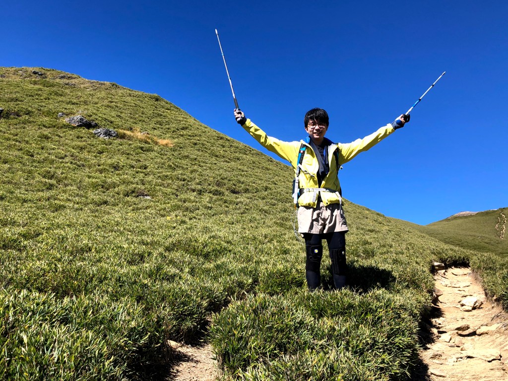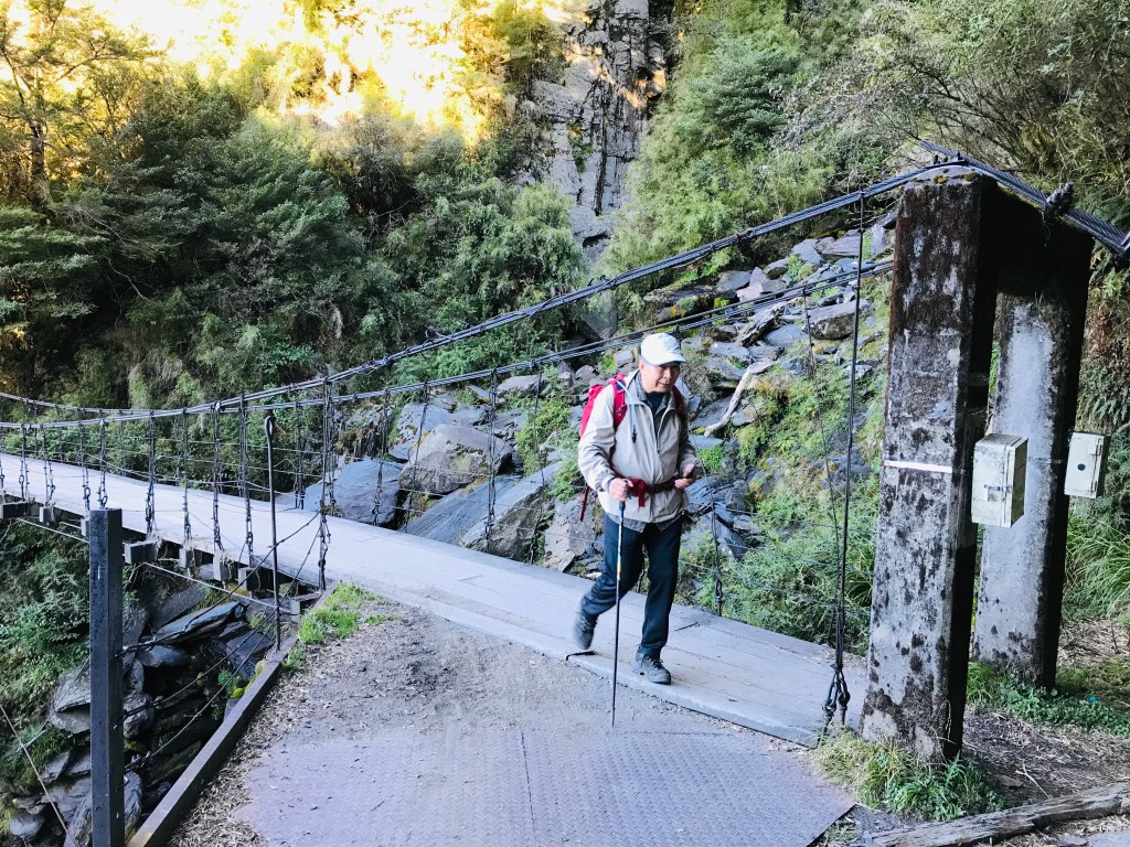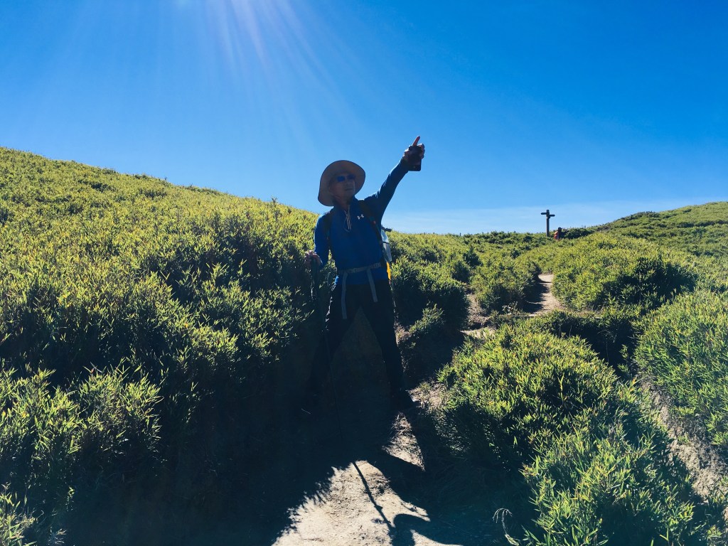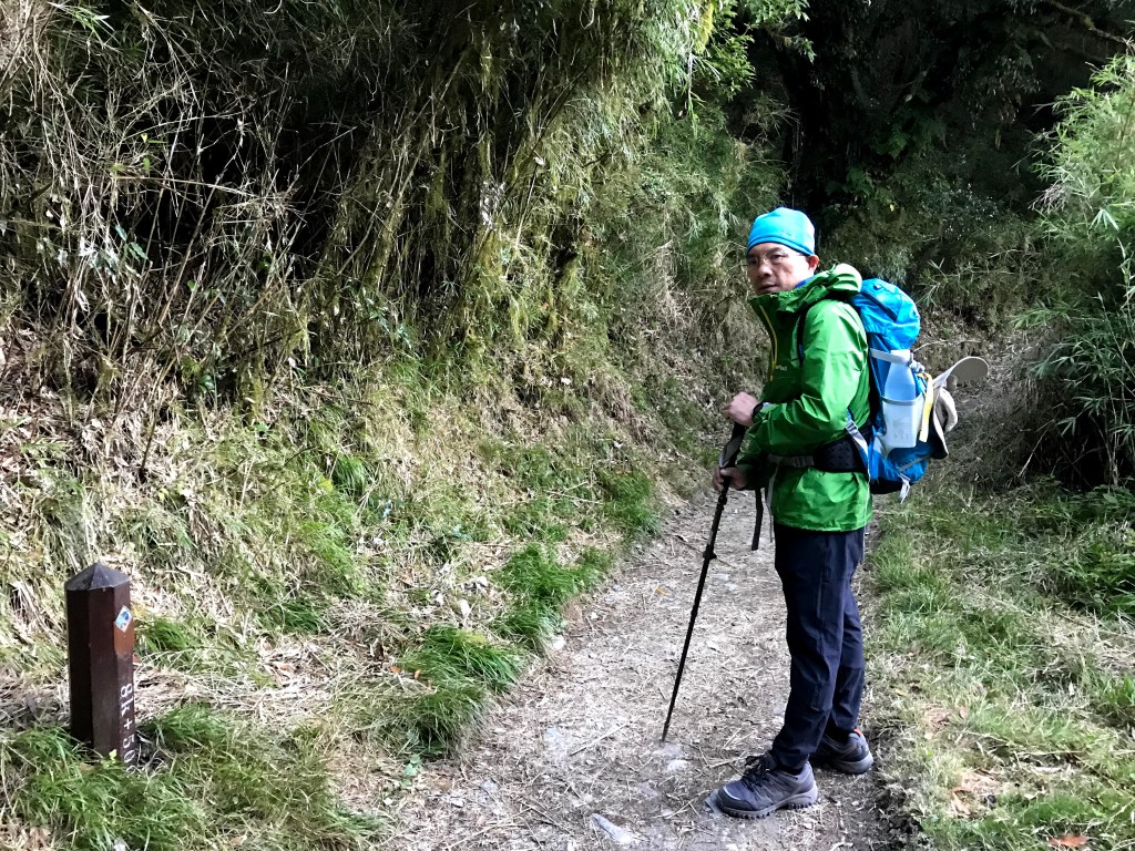 今天,在能高越嶺古道西段約7K處,追上了一位70歲的林先生,林先生說今天是他的生日,想單攻奇萊南華來給自己慶生,林先生的步伐輕盈速度不慢,我們三人雖走在前方,但只要稍微停頓林先生必然趕上,令我佩服不已!但過了天池山莊岔後,林先生開始落後於我們,到了天池後,我們三人沉浸在金黃草原中,也暫時忘了林先生的存在。