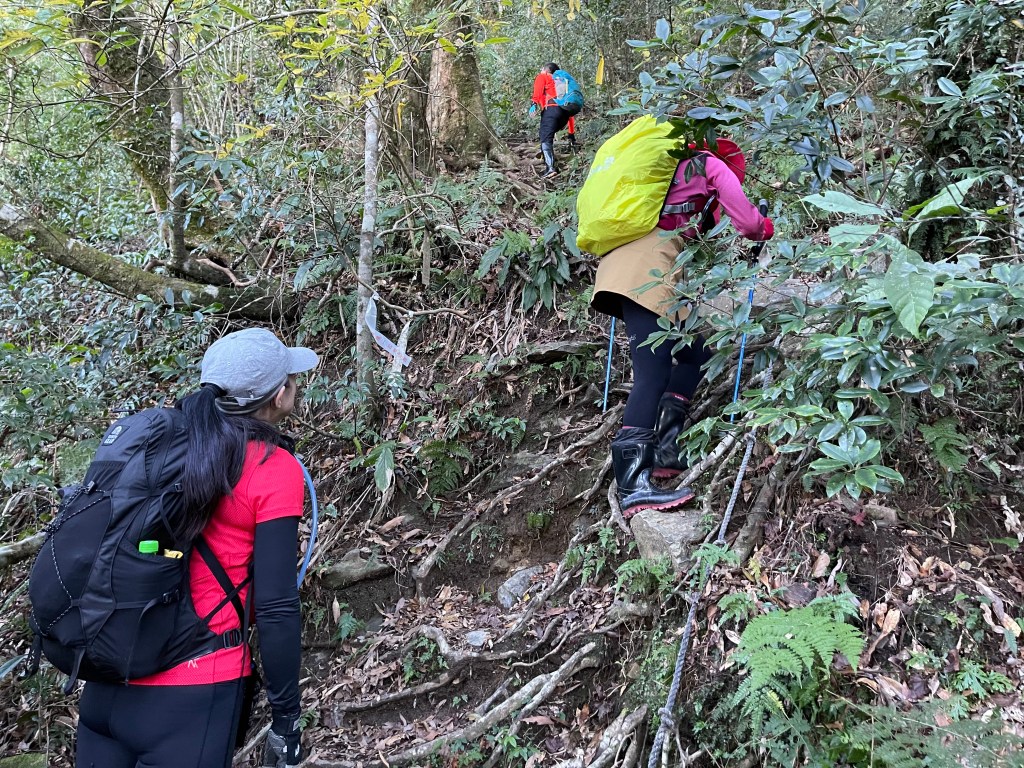 當天走到危崖攀爬這段時,個人非常的緊張,怕兩位女生爬不上去,實在是沒有什麼支撐點可踩踏,又沒有繩索可拉,如果有繩子,危險性就降得很低了!謝謝您的支持還有鼓勵!