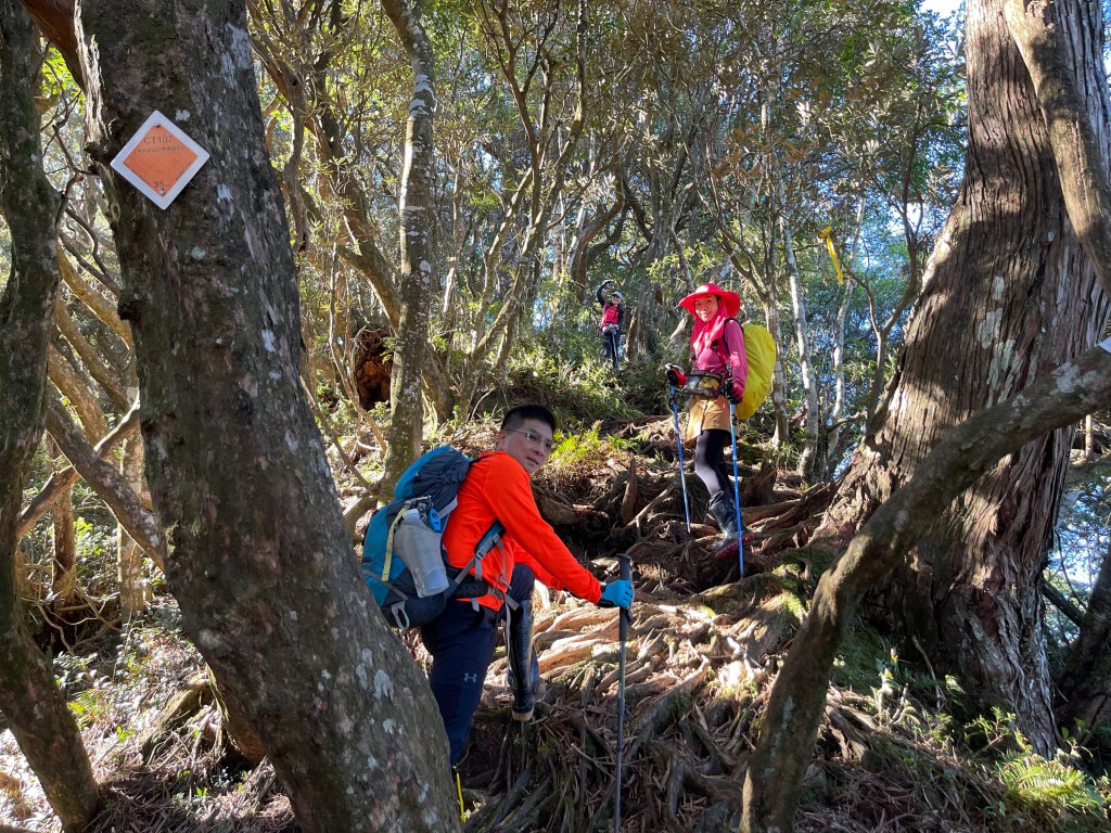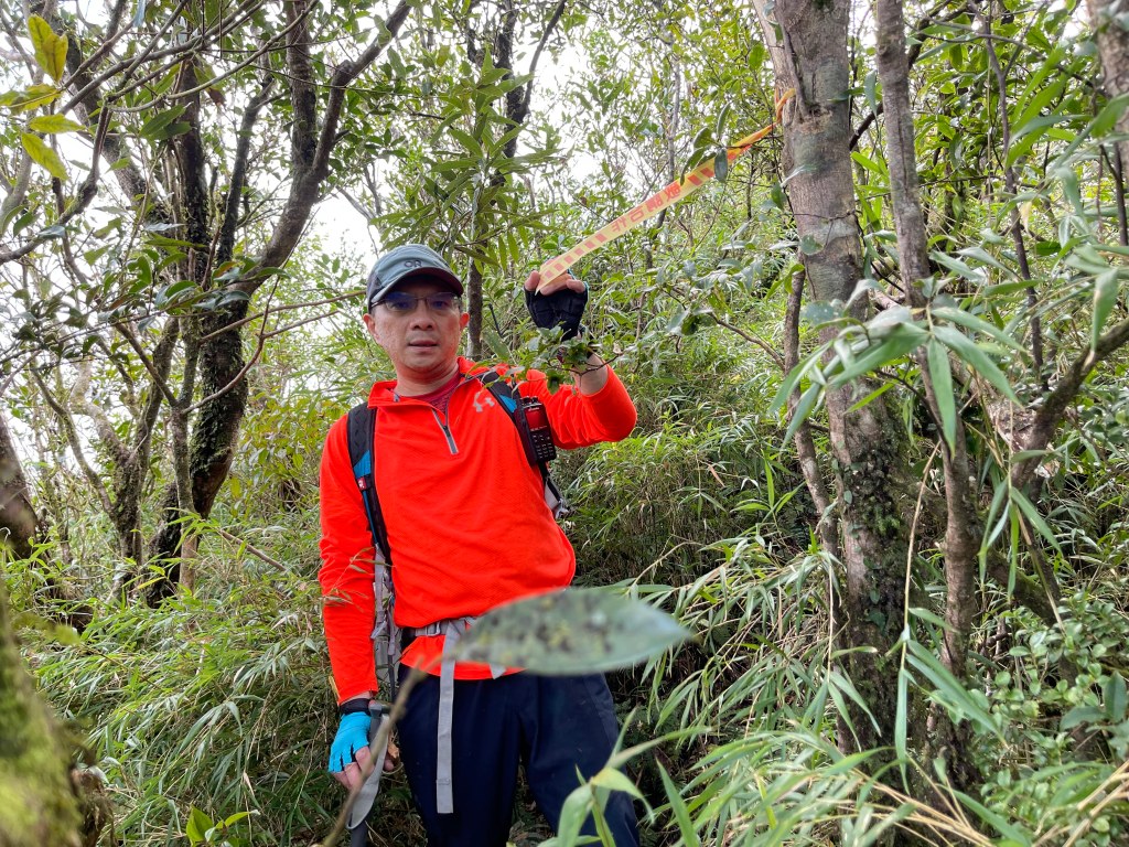 再加上,Smile不但要拍攝紀錄,還堅持一路上要綁布條,共綁了150條,也花了不少時間,就像當初去銅山綁布條一樣。(銅山也是山毛櫸的朝聖地,可以參考我們之前的文章:2019-11-10 宜蘭太平山:望洋山+山毛櫸國家步道+銅山 🦋花蝴蝶🦋)。還好,全員平安而回,即使慢了些!