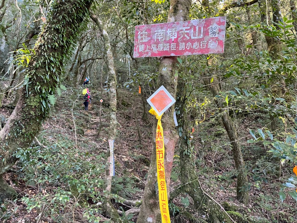 南插天山與北插天山的三角點,都有重新精心製作的鐵製名牌,應該是林務局所為,蠻好的。南插天山與北插天山之間的路徑,並不特別推薦給朋友們,但個人也不敢建議要挑戰的朋友們不去,今天在路徑比較不明的路段,綁了150條的黃色布條,希望會對即將要走的朋友們有所幫助!
