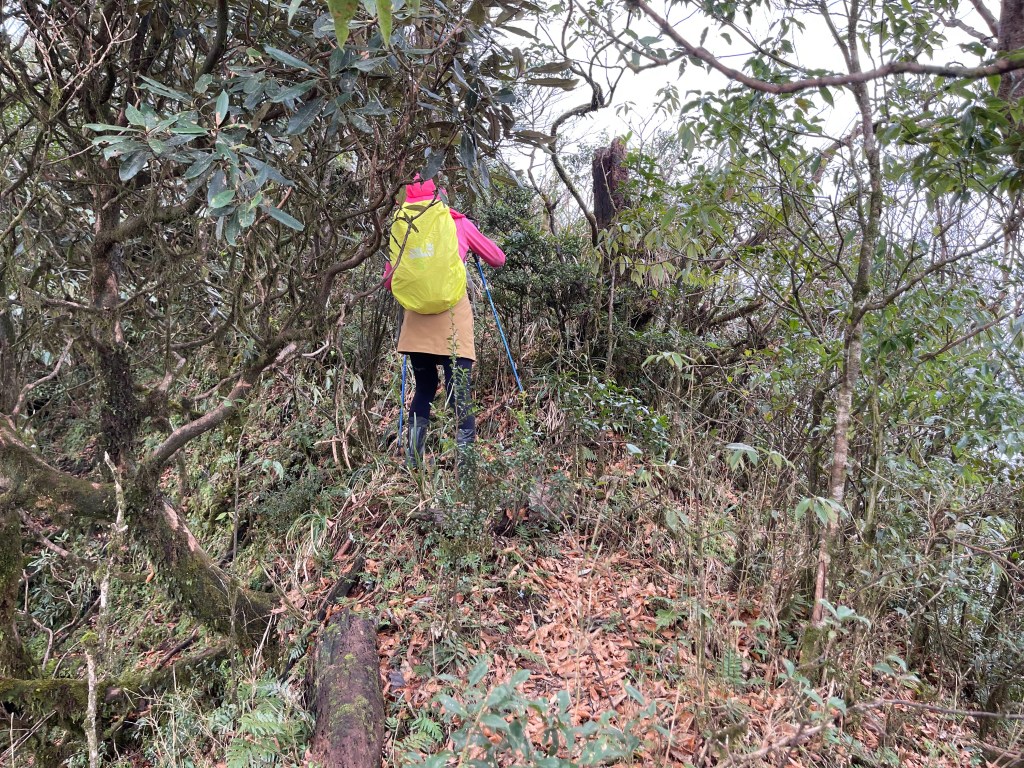 上圖:路徑逐漸陡上中,此時天氣也開始轉為陰天,且伴隨了一些些的霧氣。