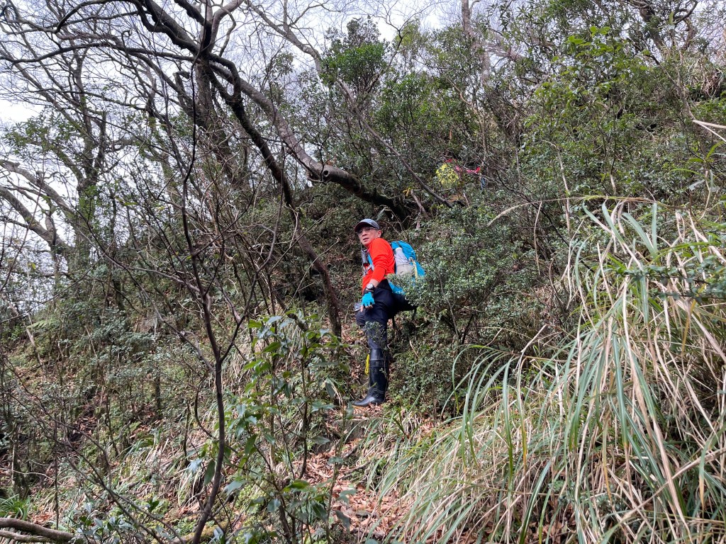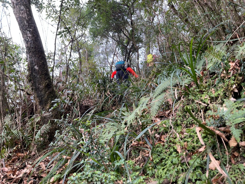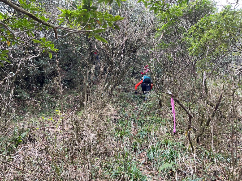 上圖:Smile與我(Gosen)開始往北插天山方向走,要先陡下再陡上。