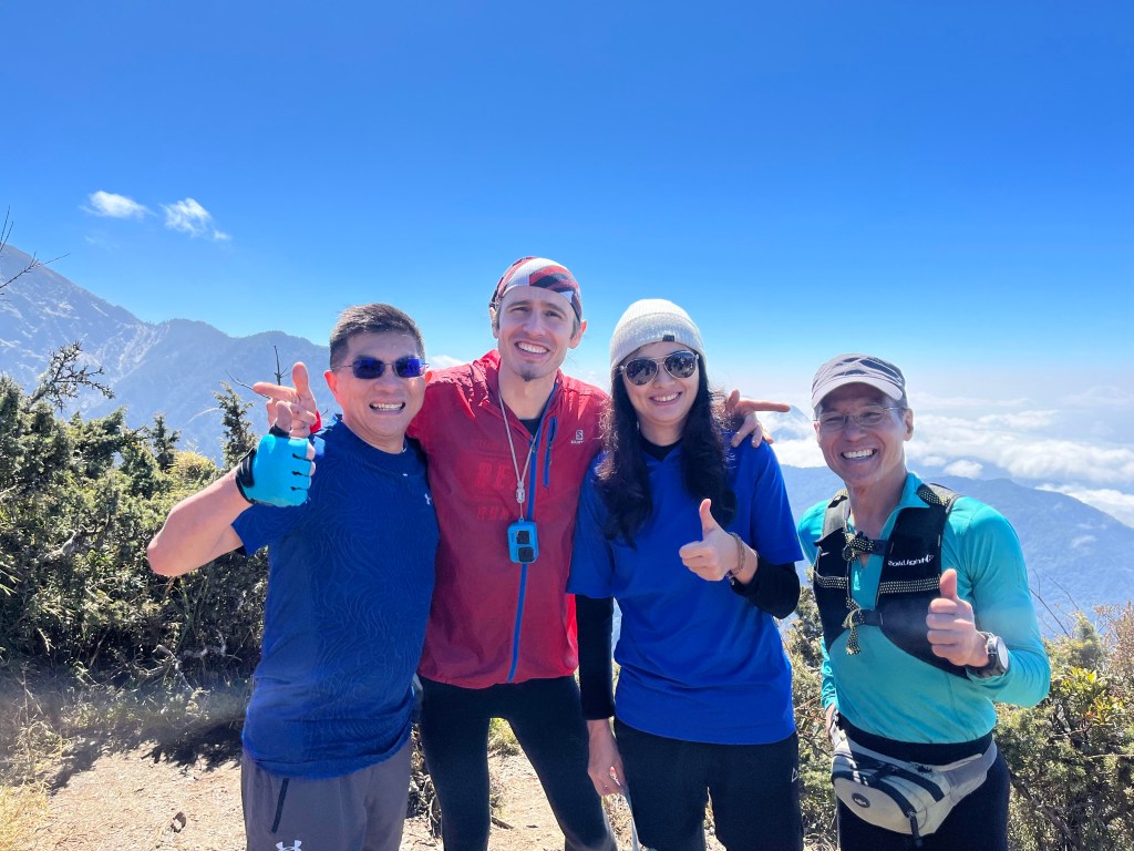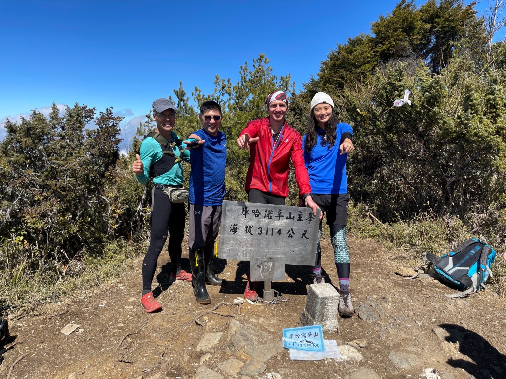 今天的最大亮點,就是登頂庫哈諾辛山後,居然看到很親民的跑山獸(Petr Novotny)還有古哥(FB帳號:古塵流)!跑山獸及古哥此時一行人再加上仍在三角點的山友,就在三角點拍照拍不完啊!下山時,又遇到跑山獸的拍攝團隊,裡面還有周青、楊導演等,今天怎麼會這麼lucky?結果回到長青祠超過下午三點了,想說應該會被開單了吧?僥倖?!