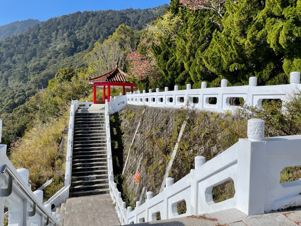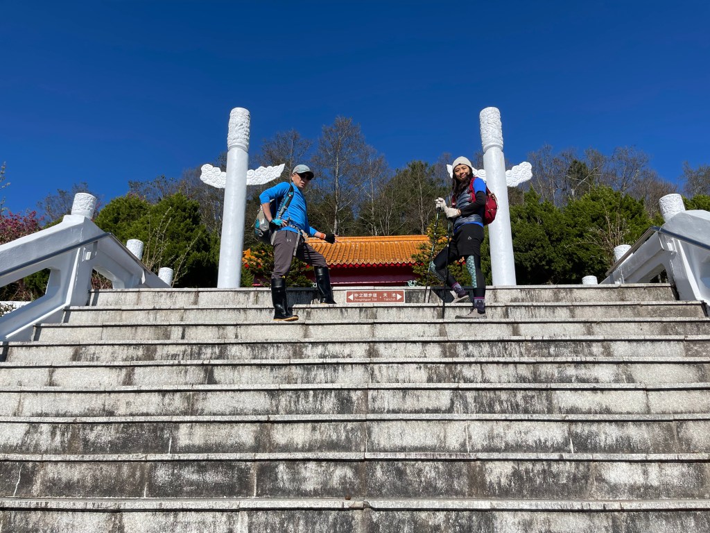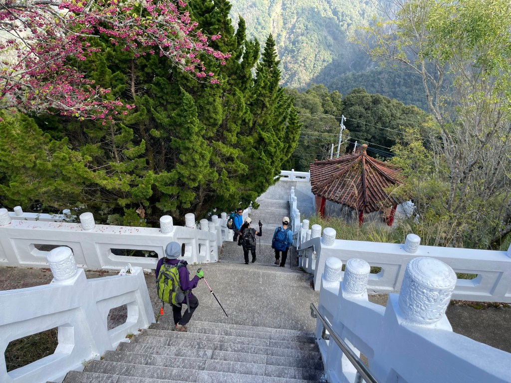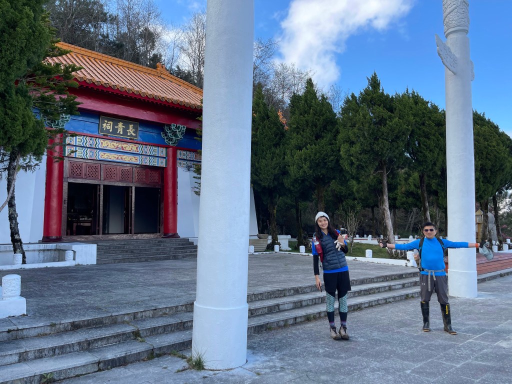 由梅山管制站開約40分鐘的車後,抵達天池/長青祠時,必須將車開到管制人員前進行迴轉後,再往前開至前方路邊有劃停車格的位置來停車,因此若朋友在管制站排隊時的位置比較前面,到了天池/長青祠時,停車位置也會比較接近登山口。