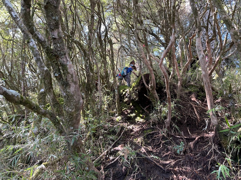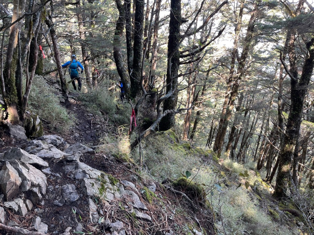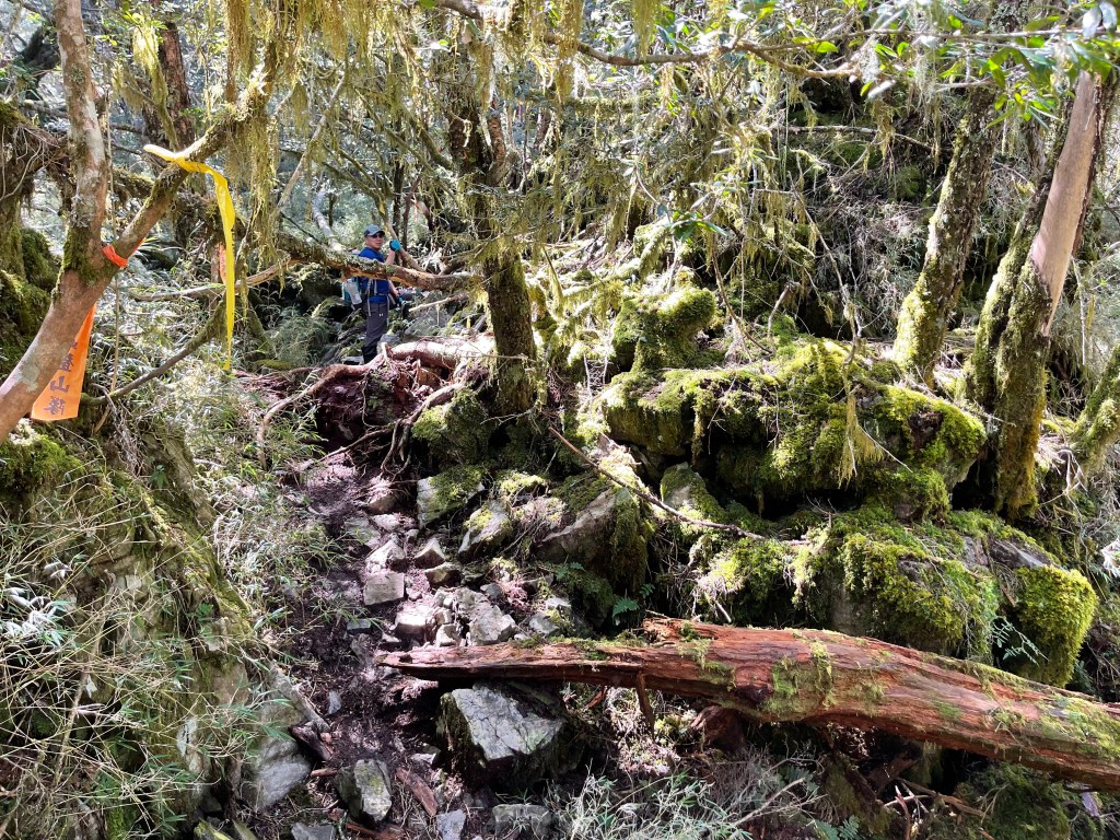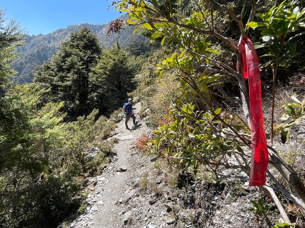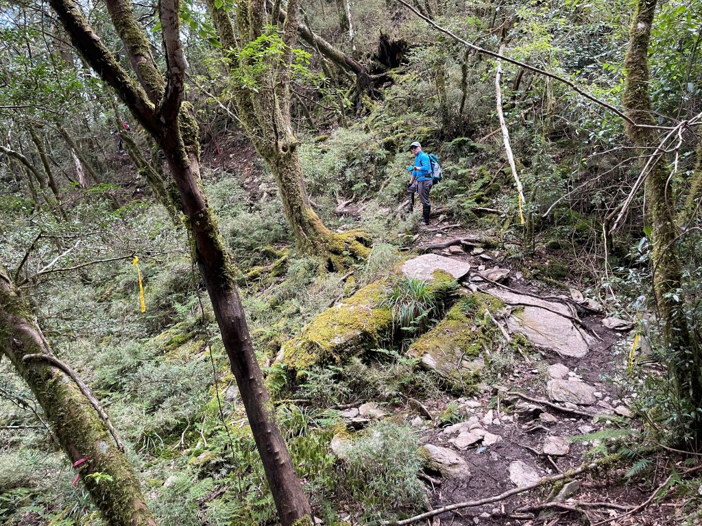 (1)起登過了天池後不久,沿著階梯步道而上,左側會看到有封鎖線(🚧),這是為了避免一般遊客走進登山步道而設,其實走進封鎖線,再去接上原來正常的步道,這一段的路線比較優美好走。如果你過了封鎖線一段後,再左轉沿著傳統路徑進入,這一段路線一開始會比較崎嶇一些。