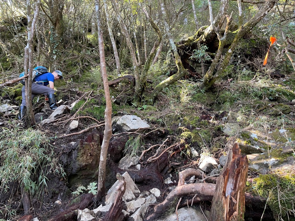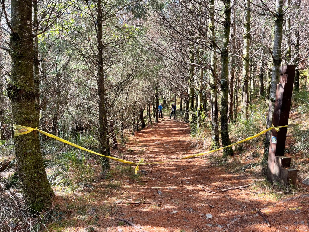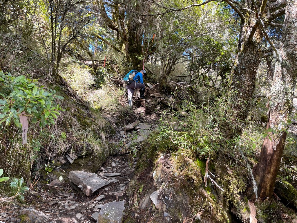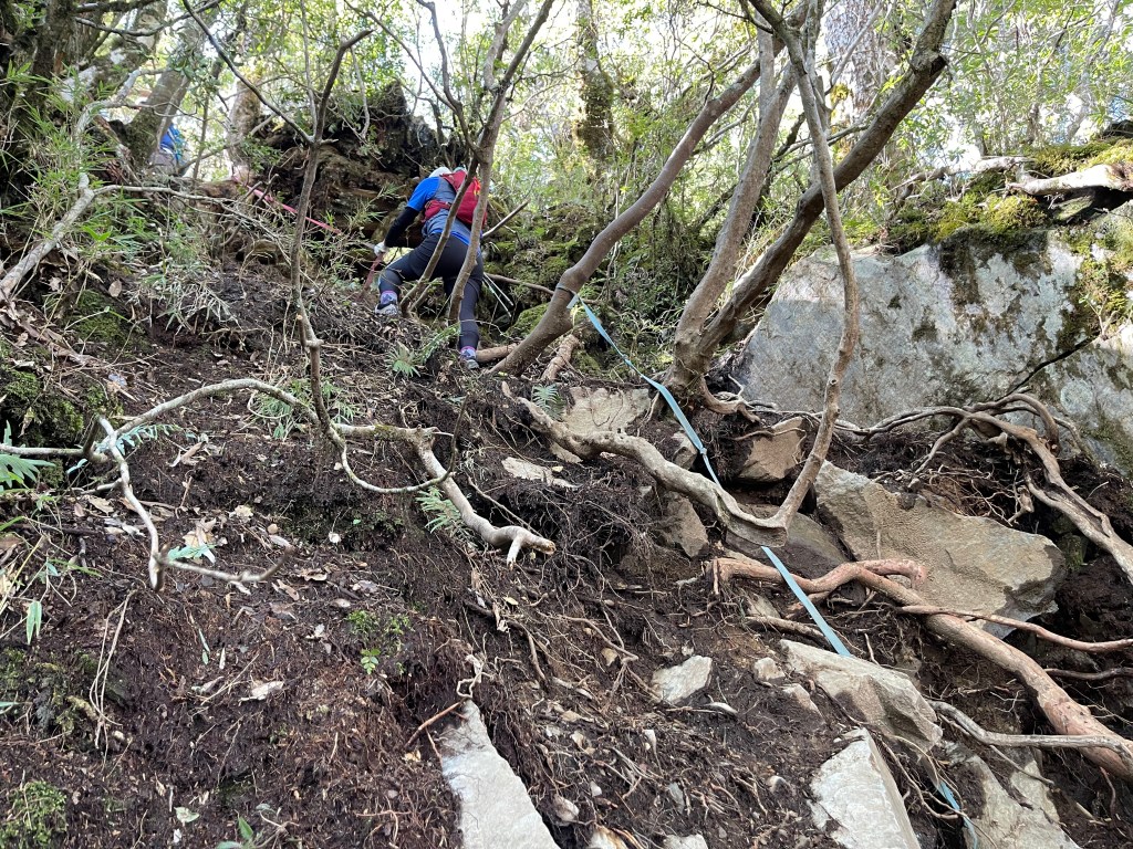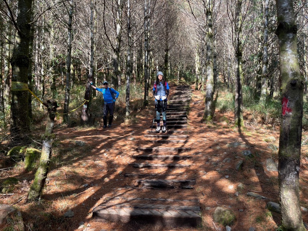 (1)起登過了天池後不久,沿著階梯步道而上,左側會看到有封鎖線(🚧),這是為了避免一般遊客走進登山步道而設,其實走進封鎖線,再去接上原來正常的步道,這一段的路線比較優美好走。如果你過了封鎖線一段後,再左轉沿著傳統路徑進入,這一段路線一開始會比較崎嶇一些。