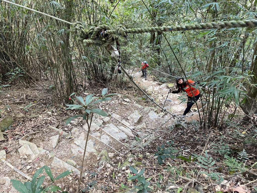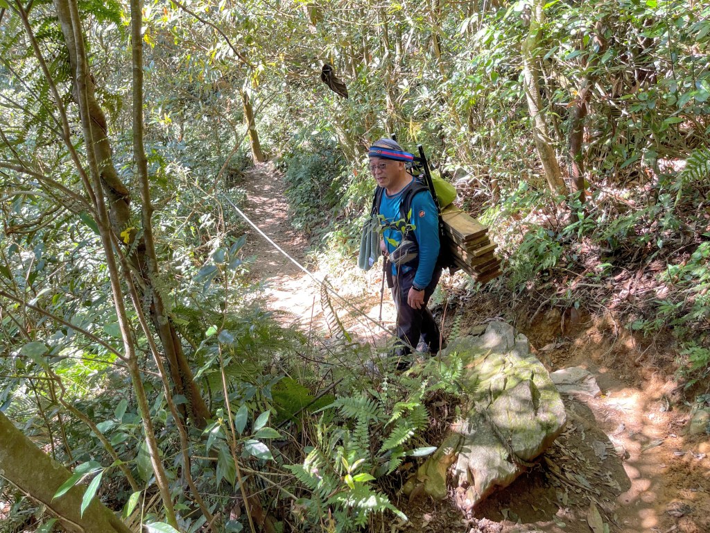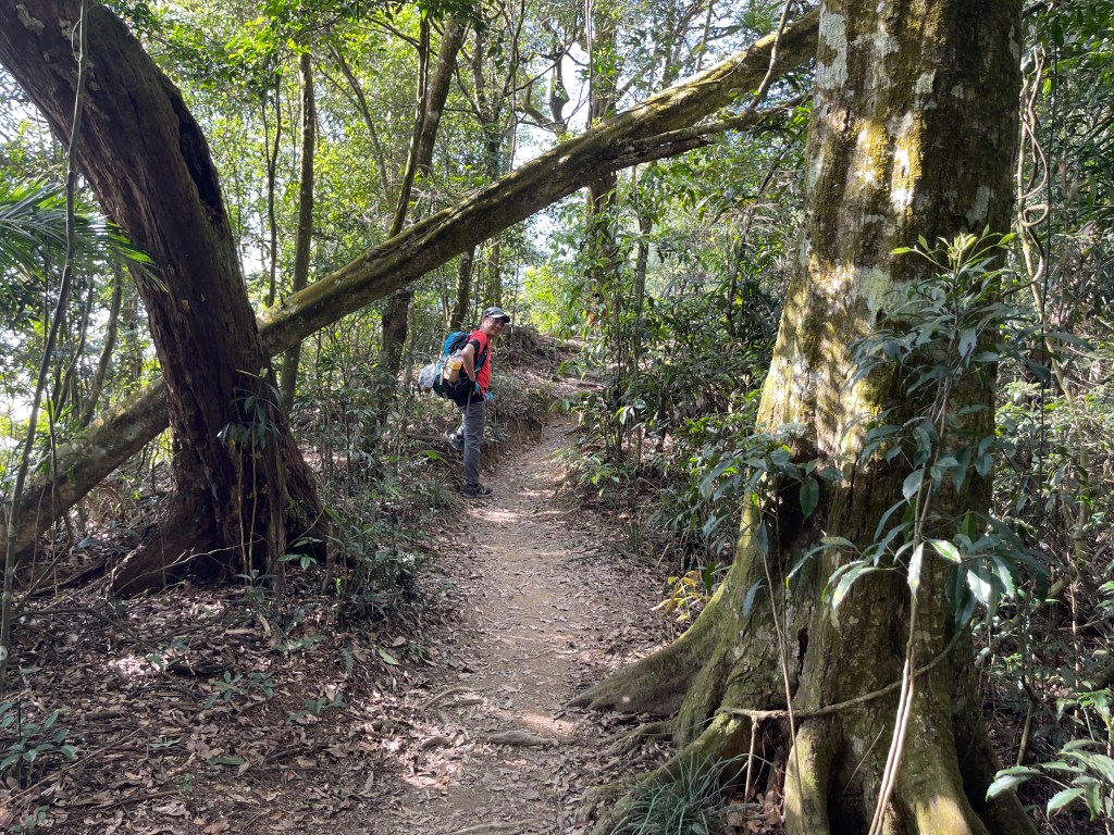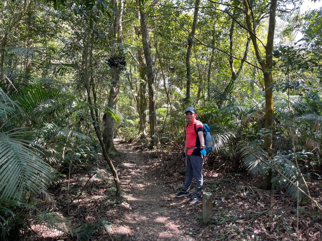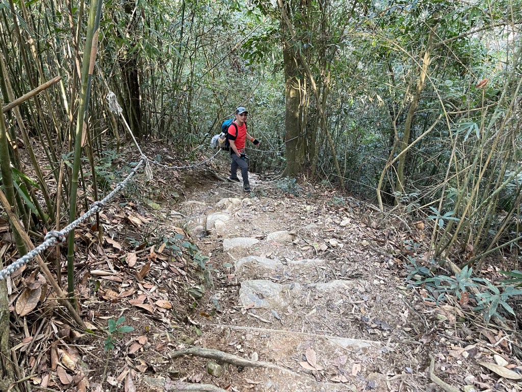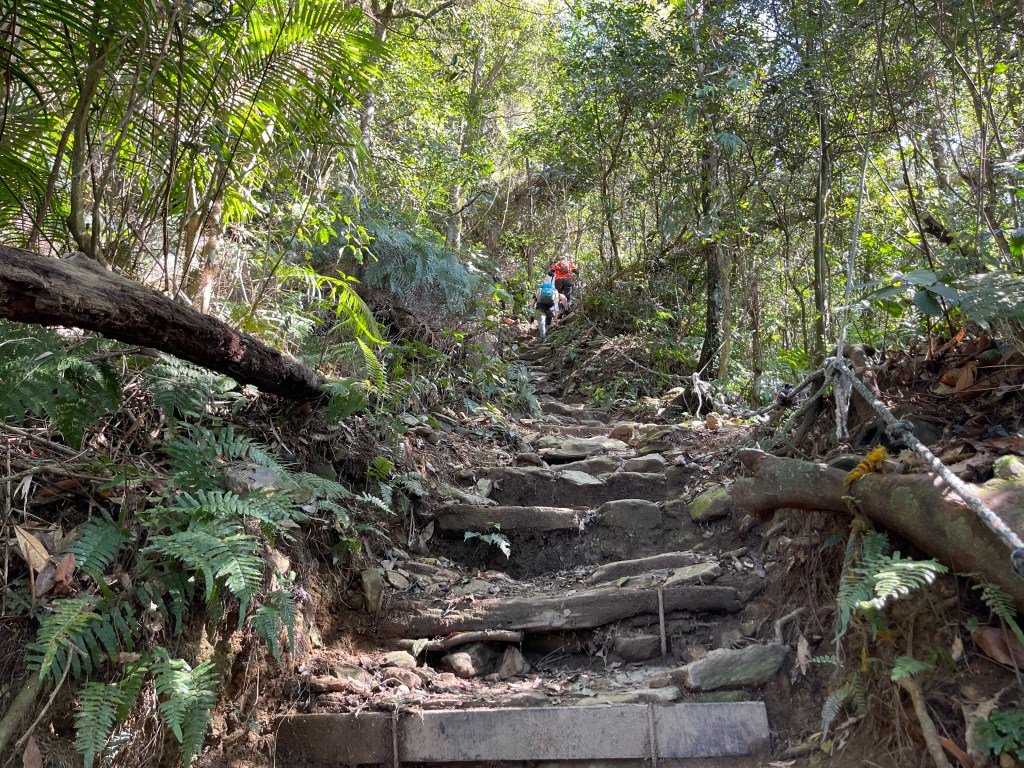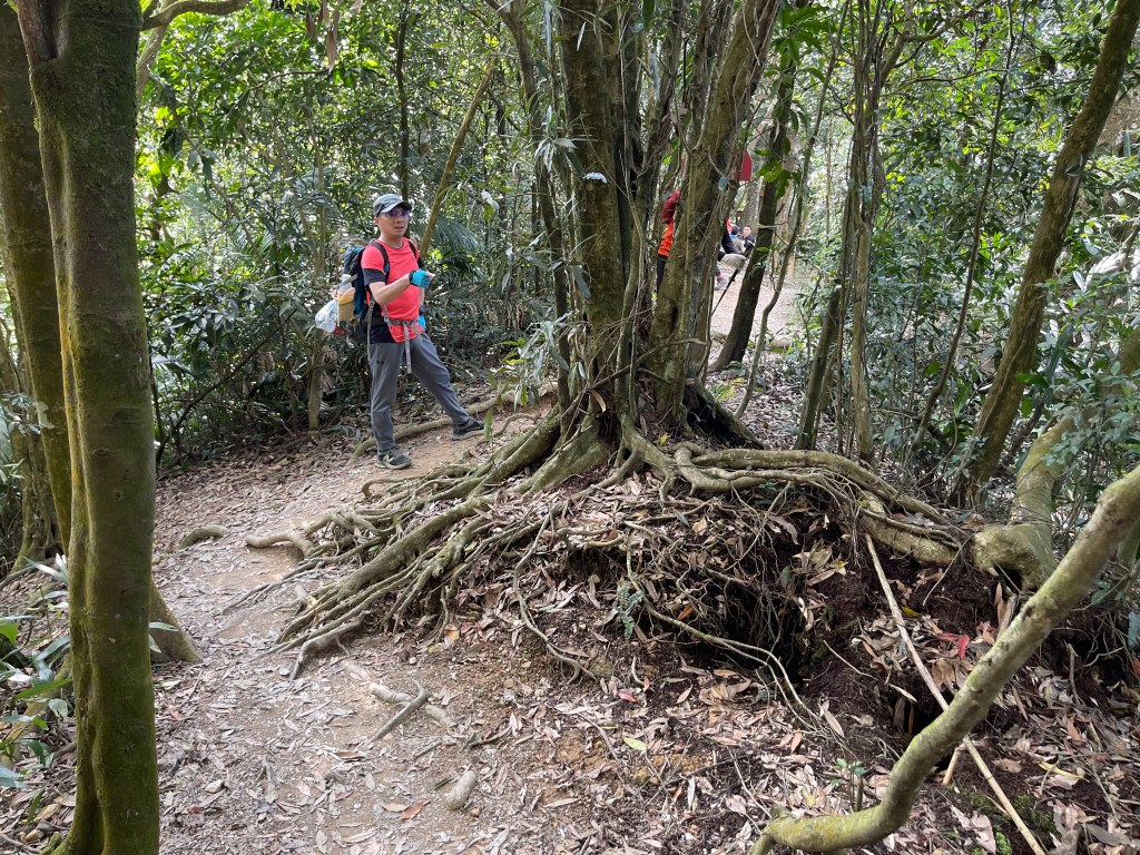 再接上一段極陡峭的階梯路,再來就又是一段平坦的山徑,一直到9.3K尾寮山前,有四段這樣的過程,有點像是梯田的形狀,如果要說這樣的路徑硬不硬?還蠻硬的!但如果要跟前一天爬庫哈諾辛山來比,這算得上是比較親民了!