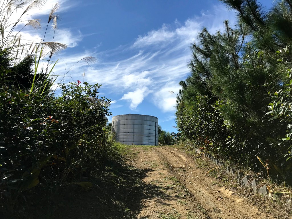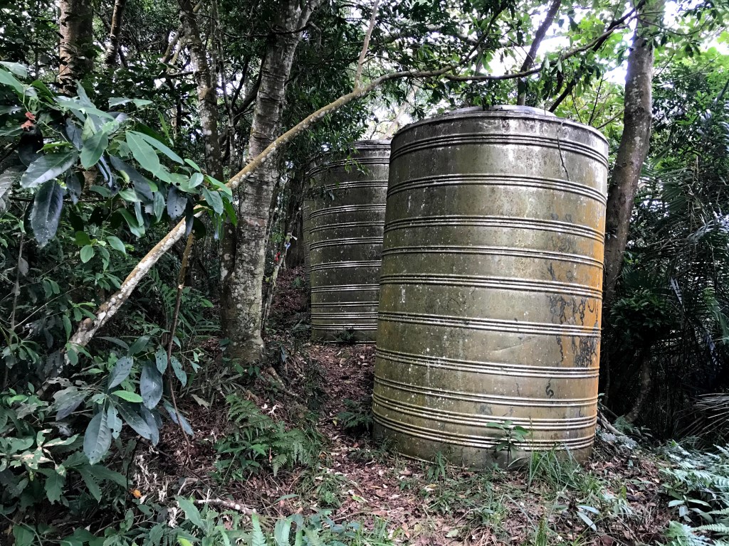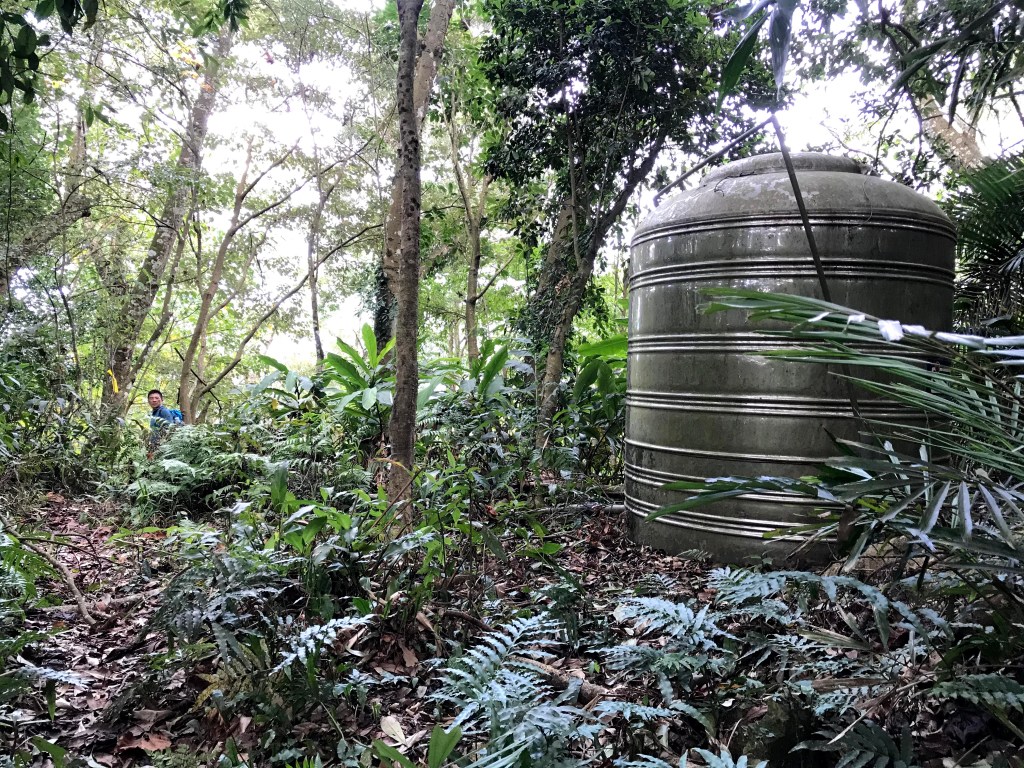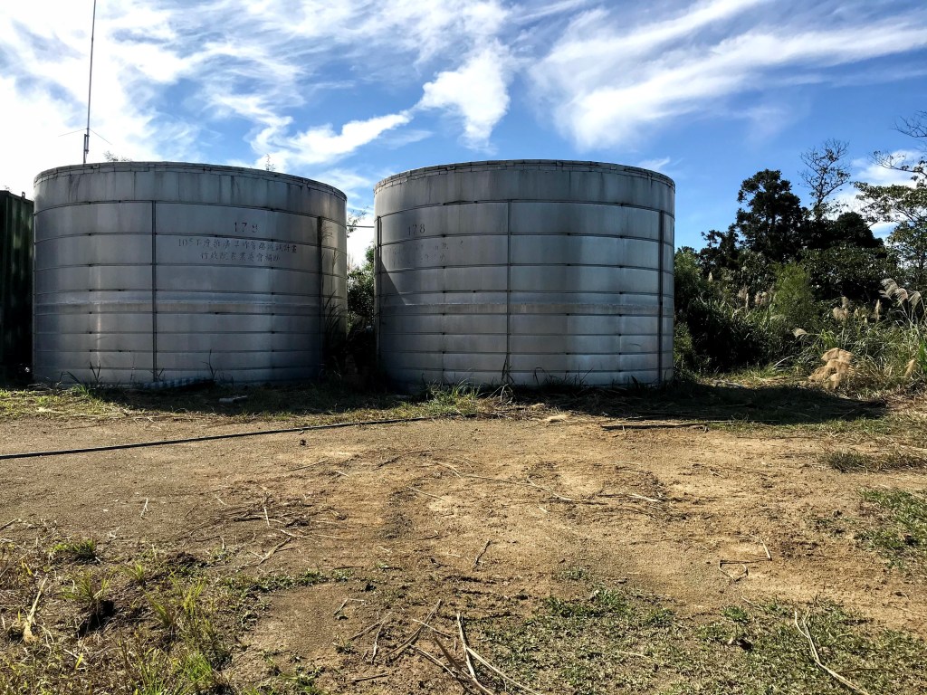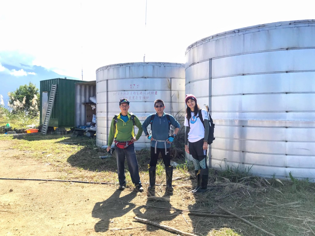 過了廣告招牌後,就進入到私人土地,因此當我們繞到桃牛坪山原三角點的位置時,就發現只有兩個大大的鐵製水塔,沒有三角點了。