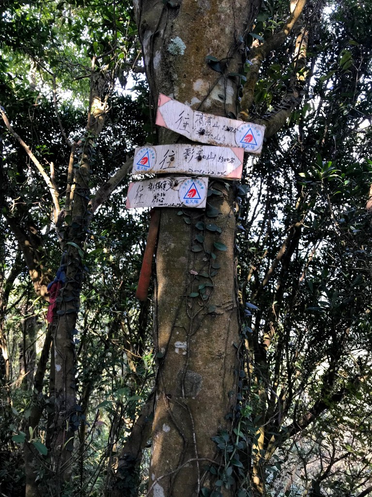 高甫山無基點,在此略微休息一下,繼續往彩和山方向,續行200m會遇到岔路口,有路牌顯示,左往「福大煤礦步道」,不取,繼續往彩和山前進,到彩和山岔(11:50,總行程第3.7km),往左是等會退回要走的路線,我們先往右,陡上約100m的距離即到彩和山,無基點,休息拍照。