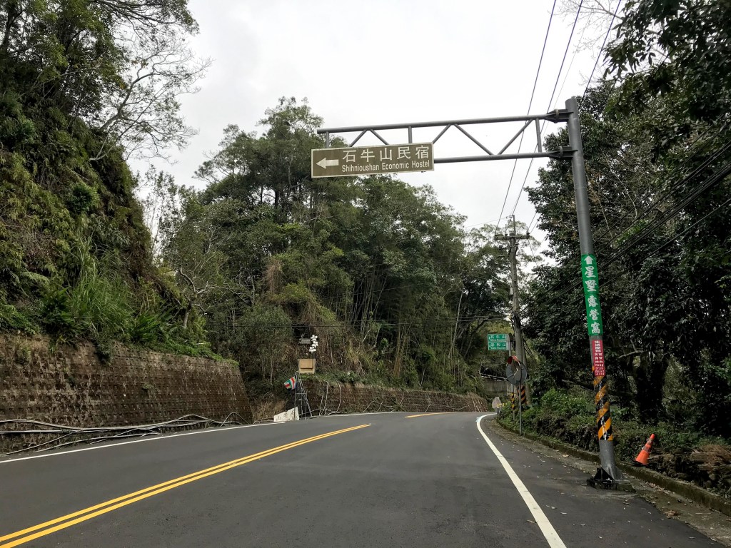 由石牛山下山往石福宮走,有兩種走法,一種是下了石牛山後右轉下接回石福宮(不是今天我們所走的路線),或者選擇回走到蟾蜍石,再由蟾蜍石岔左下接回石福宮。我們選擇回走蟾蜍石(15:03,總行程第7.0km),下走1.1km的距離回到登山口(15:25,總行程第8.1km),旁邊有一戶人家。繼續前進,即可抵達石福宮(15:35,總行程第8.7km)。接著,由石福宮沿著產業道路,繼續走可接上台118線羅馬公路(15:51,總行程第9.9km),此為台118線36.7km處,繼續沿著羅馬公路走3km,即可走回統一度假中心(16:26,總行程第12.9km),結束今天的行程。
