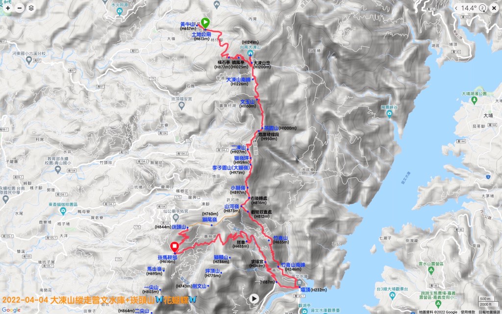 今天的路線是:大凍山縱走曾文水庫+崁頭山