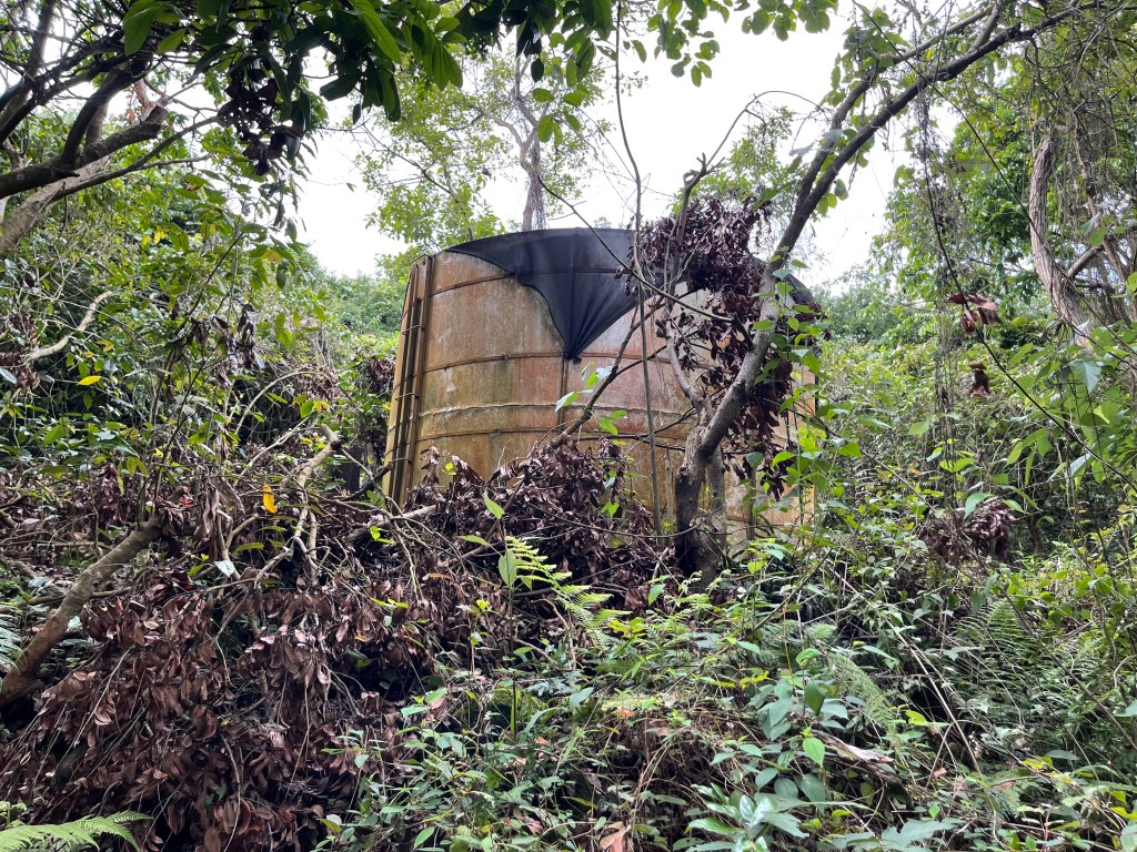 由產業道路轉進山徑後,只要走100m的距離就會抵達二凍山,沒有三角點。再繼續往前走300m會到獅嶺坪,看得出這裡以前應該是一個樂園吧?因為還有獅嶺坪森林公園的標示牌。再往前續走約200m且有往上的石階梯,當看到鐵製大水塔後就會抵達李子園山,又稱為大獅嶺。這就是我們今天的第六峰、第七峰及第八峰。