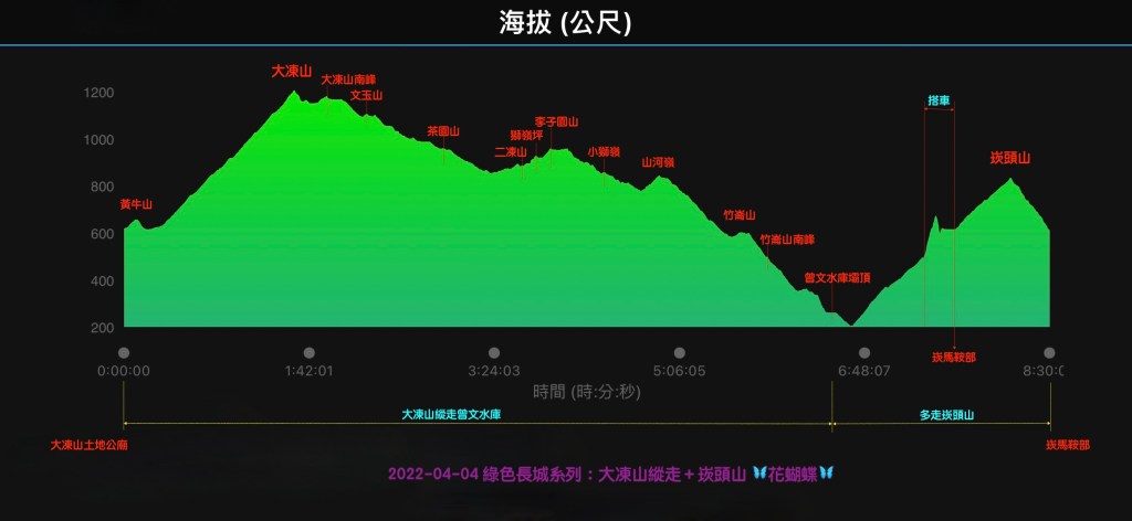 “2022-04-04 綠色長城系列:大凍山縱走+崁頭山 🦋花蝴蝶🦋” 有 5 則迴響