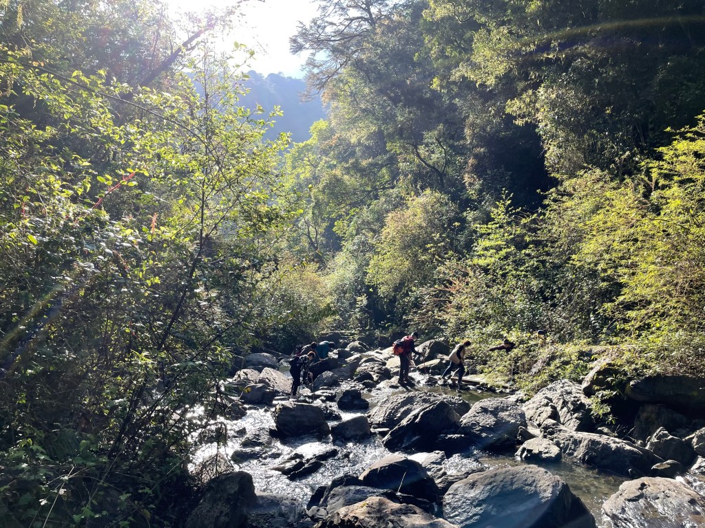 過毒龍潭岔路後,路徑依然相對好走,緊接著是第二次渡溪,此處水量較小也較為容易。