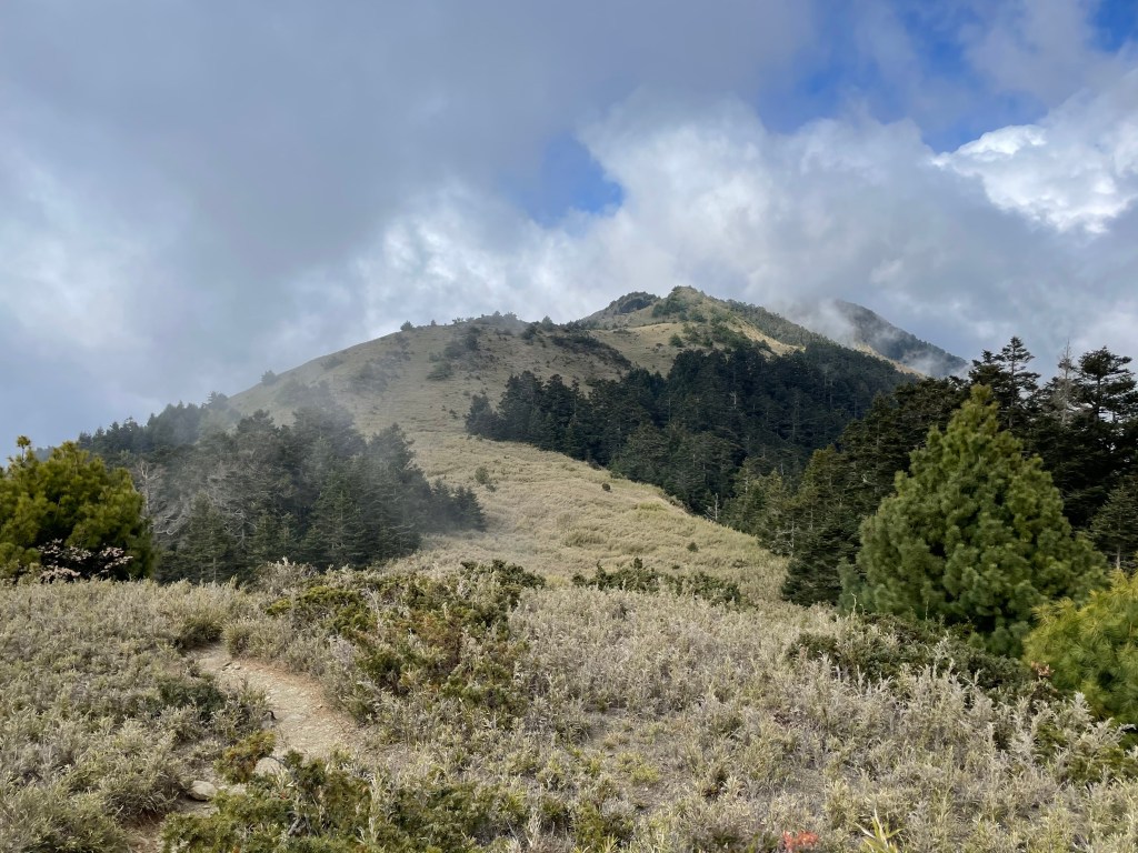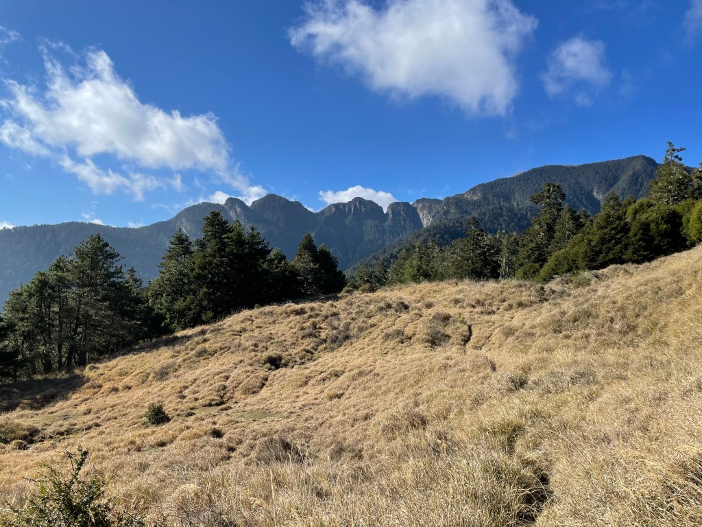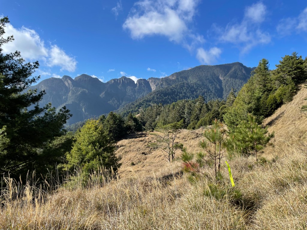 上圖:遠方的山頂是加利山登山口,因為加利山登山口其實比加利山還高,從加利山登山口出發要先下到鞍部再往上爬才會抵達加利山。
