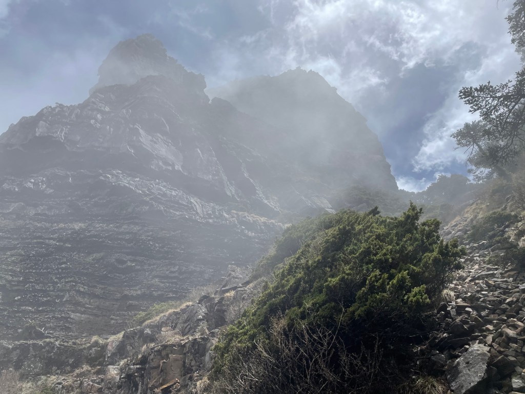 上圖:行至中途,發現雲霧有逐漸散開的趨勢,但也於事無補,有4要補了。