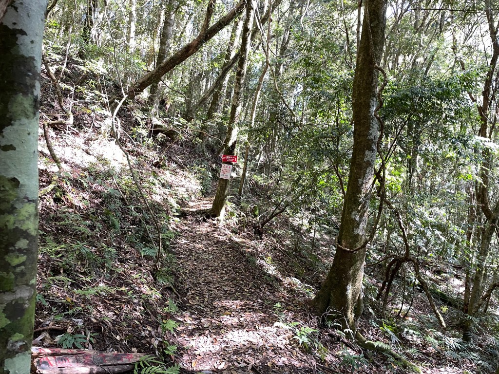 途中見到2面阻止山友切捷徑的告示牌,但捷徑看來相當陡峭且不好走,難以想像會有山友想要取此種捷徑。