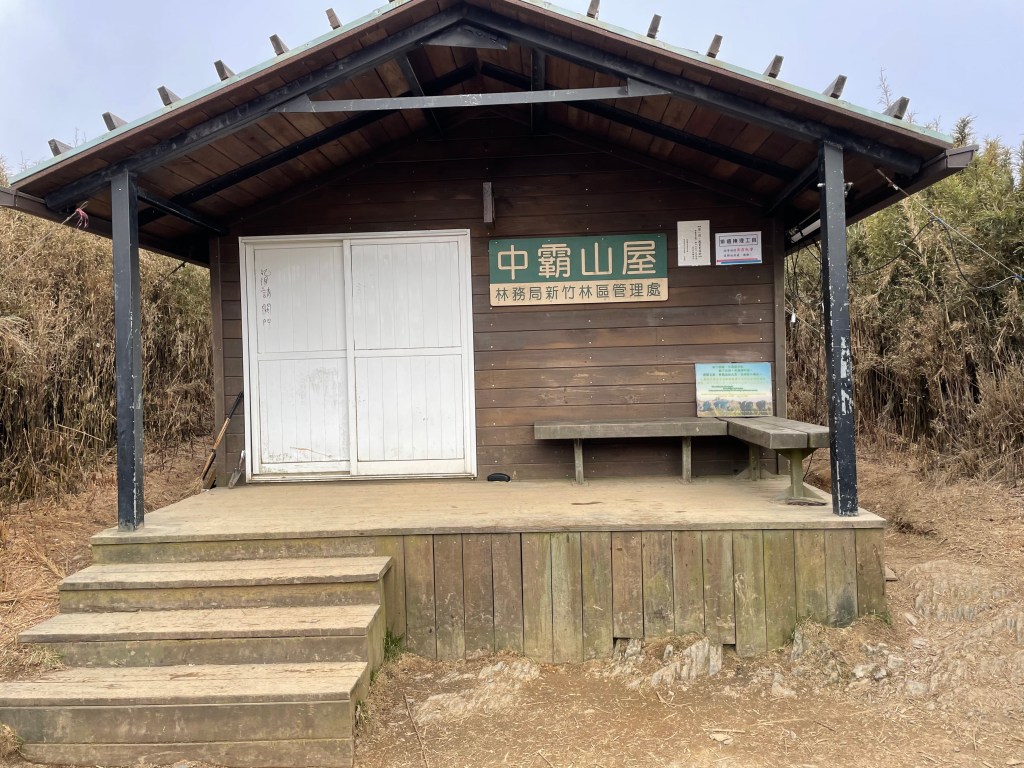 上圖:David經過中霸山屋,特別來補拍一下,因為去程時有山友在此休息,山屋右後方有集雨桶,但規劃(或山友自行規劃)的廁所區似乎就在附近,所以氣味較為難聞。