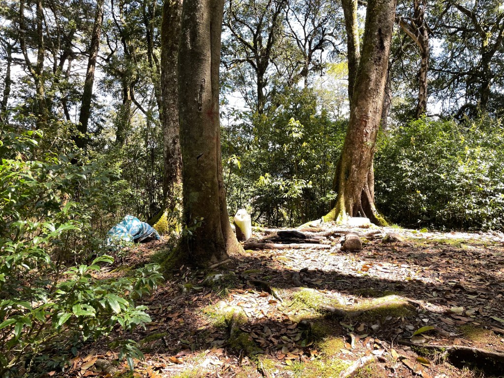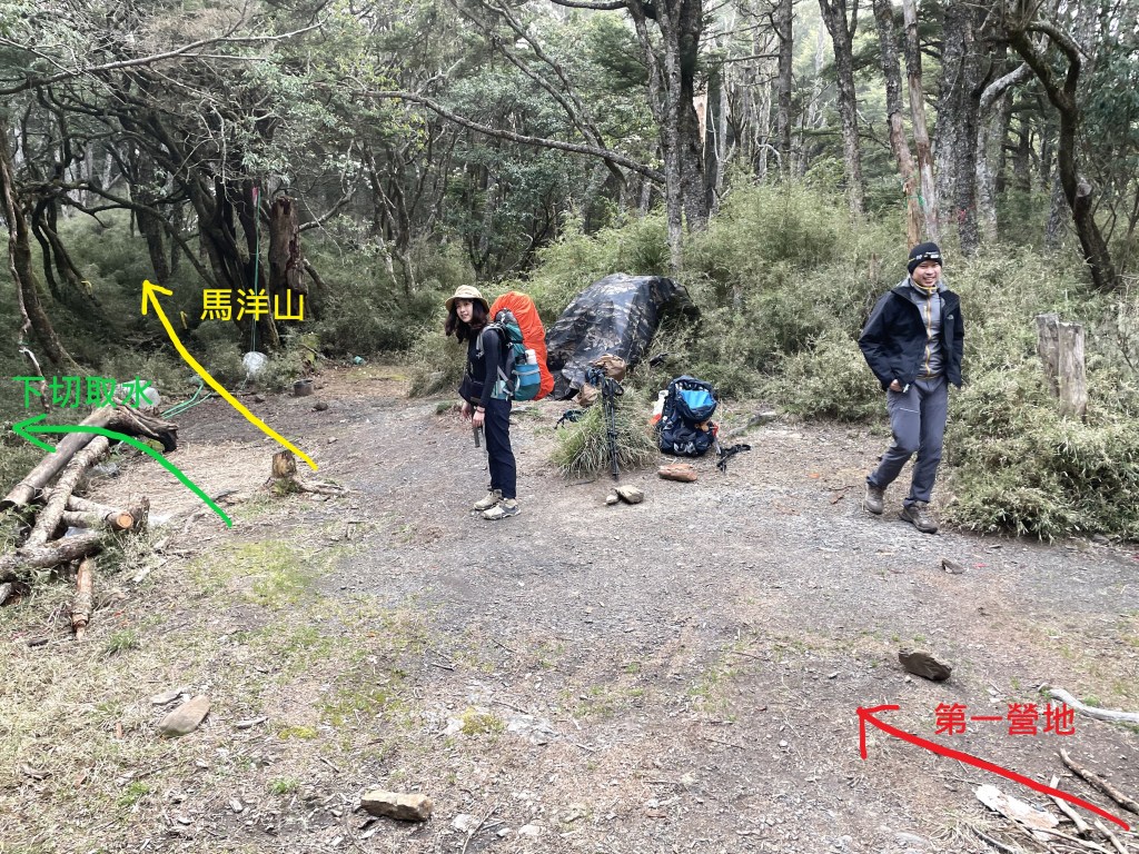 5.第二營地 營地乾爽,砂石地,約可容納4T*4,營地有2大鍋儲水,下切海拔100m可達塔克金溪取水,下10分上20分左右,取水路徑好走有布條,無訊號