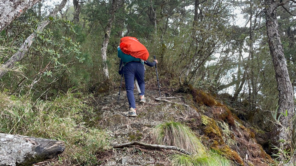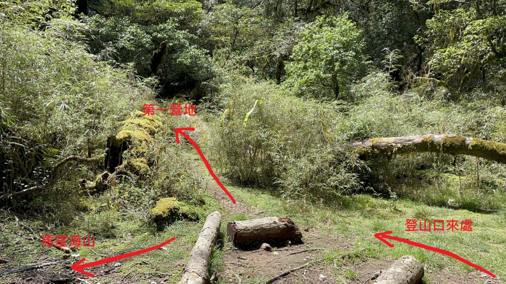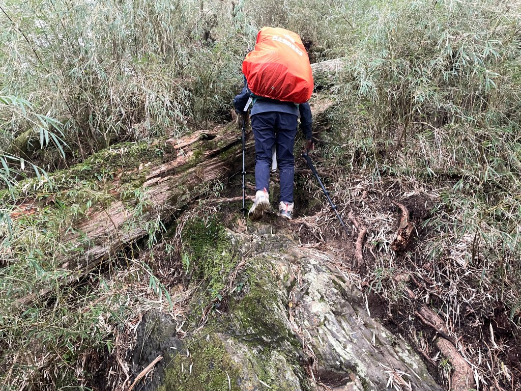 ※馬洋山岔路口(馬望海岔)至第一營地間路況非常不佳,多倒木、邊坡、陡上及箭竹海,對重裝山友而言相對不友善