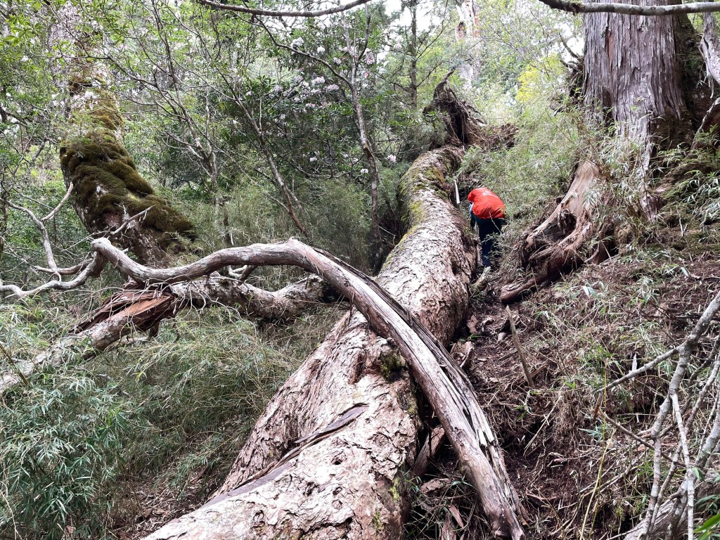 影片:其實一路上仍有許多氣勢磅礡的巨木或倒或立,散落在路徑上。