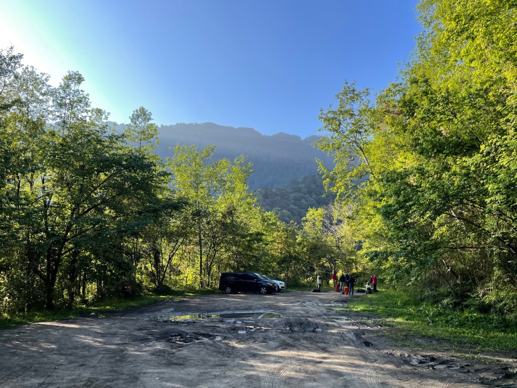 06:00一到,隊友們的手機鬧鐘便此響彼落,由於氣溫還算溫和,因此大多一夜好眠,除了湘諭剛買的二手睡墊出現破洞,導致半夜一直冷醒,精神似乎不太好。草草解決早餐後便各自收拾大背,也順便分攤3天的公裝及公糧,整裝完畢便依序前往雜貨店左側流動廁所減輕重量,此時碰到一群長輩乘車前來一遊神木區,頓時人聲鼎沸好不熱鬧,我們也在7點整如期起登。