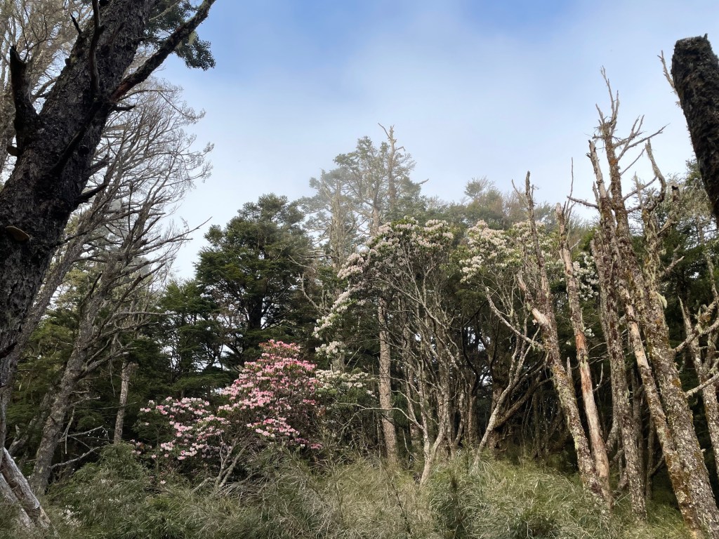 上圖:8點準時起登,再看一眼第二營地的杜鵑,此時還是風光無限好。