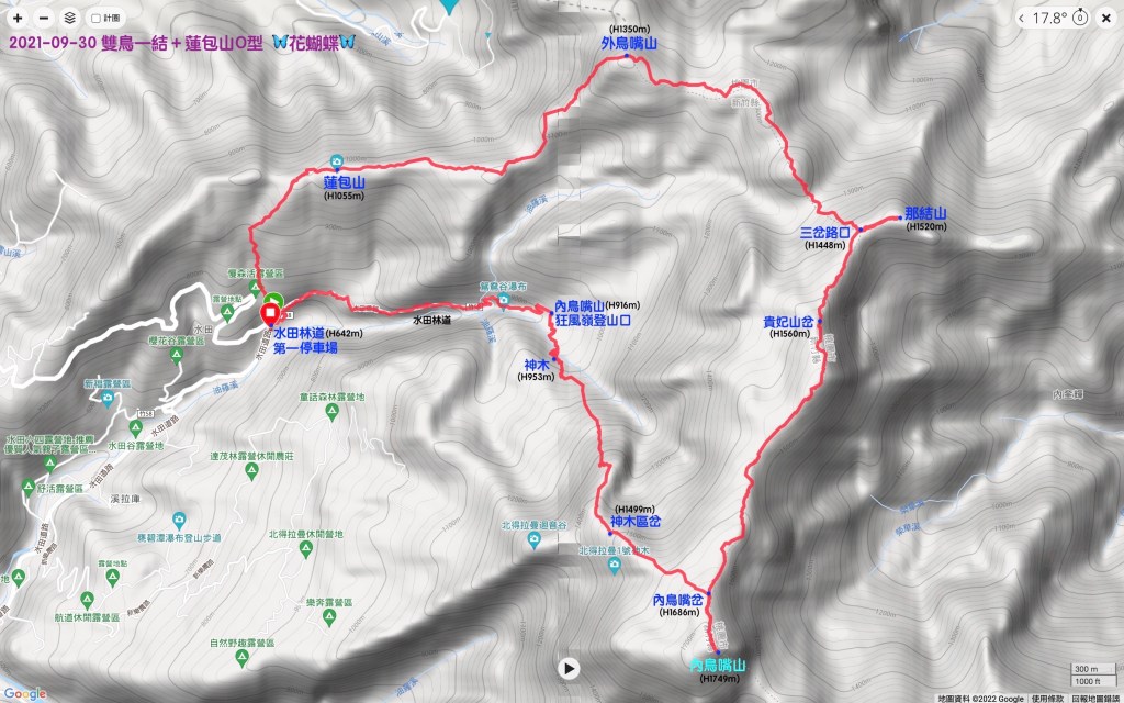 (1)第一次是由水田林道進那結山,轉外鳥嘴山由蓮包山出的O型。