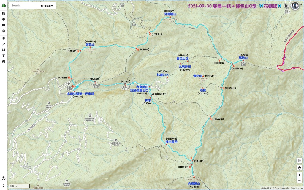 雙鳥一結+蓮包山O型,整條路線過程中有很多的岔路,要走這樣的路線,一定要事先作足功課!而且是每個人都要會看離線地圖。