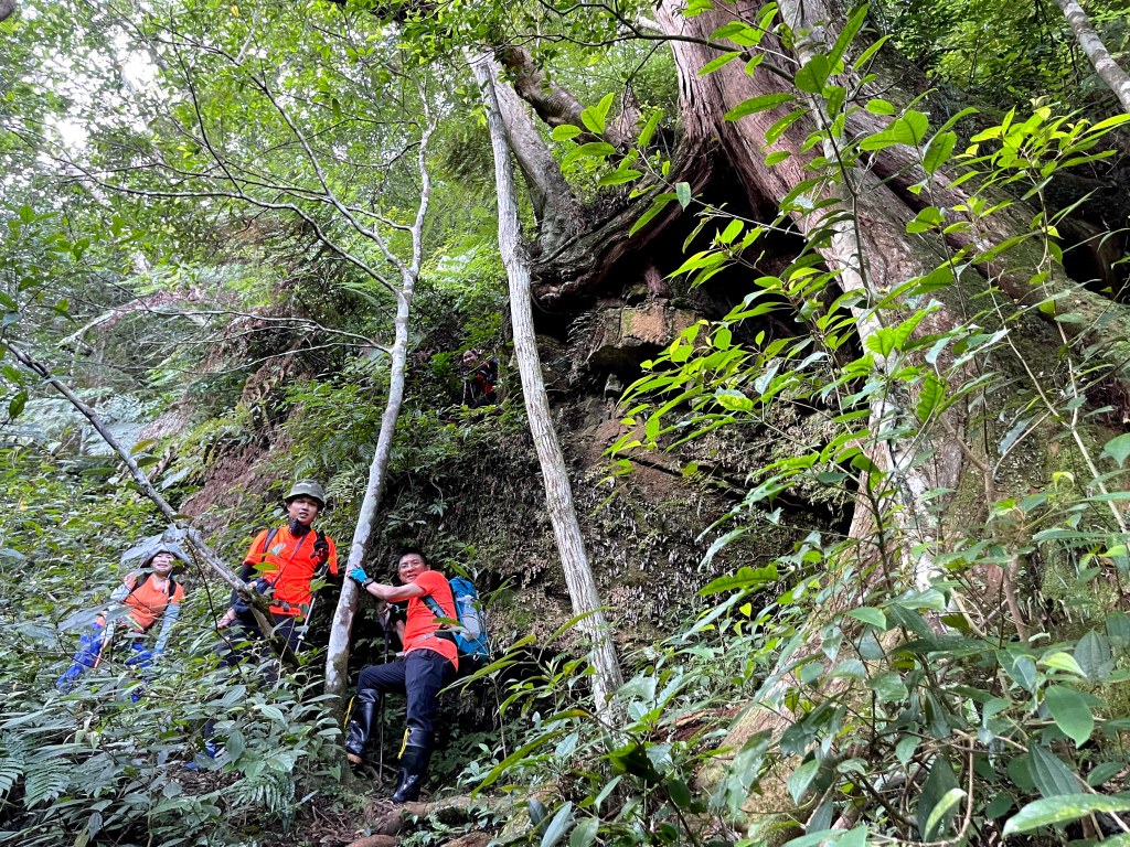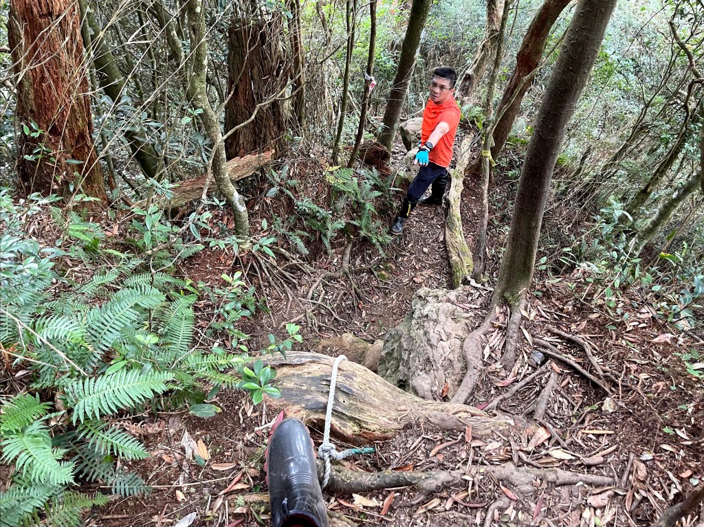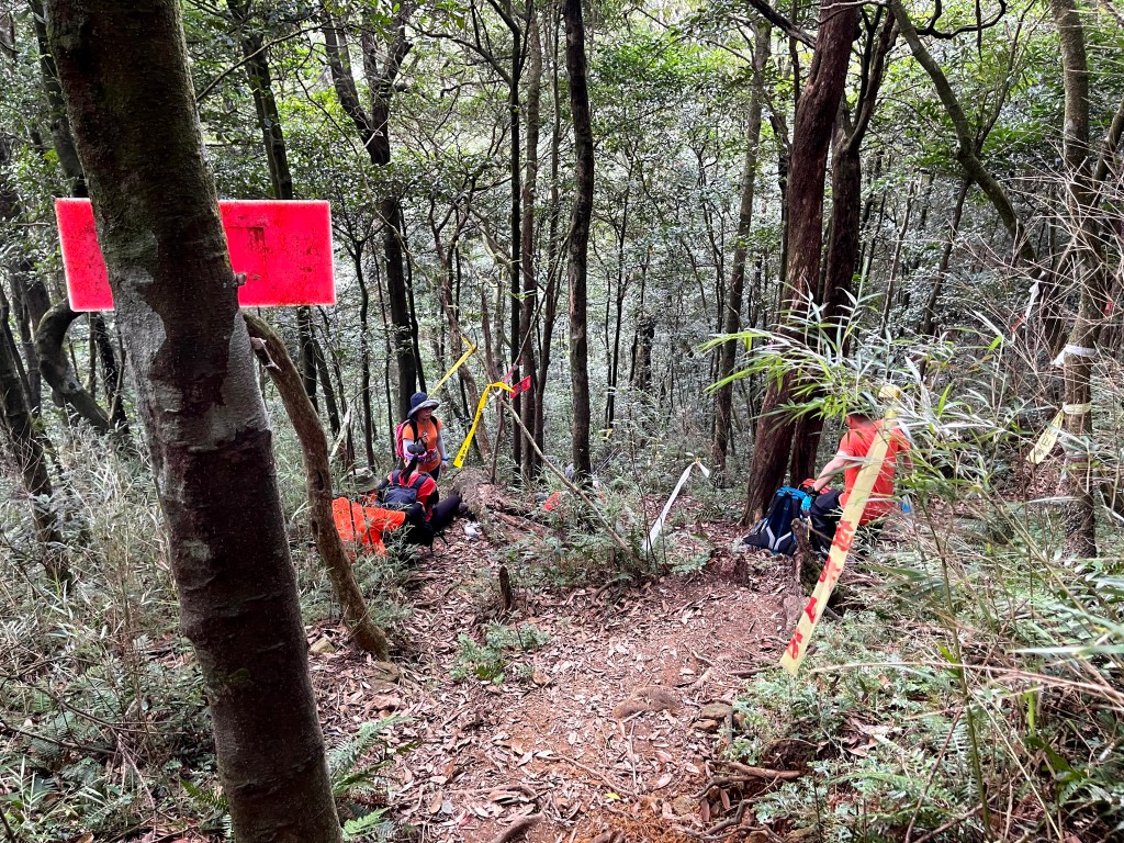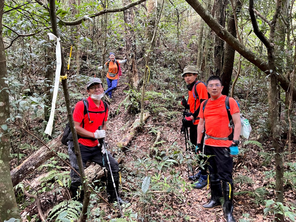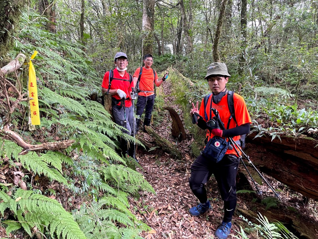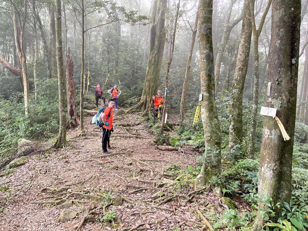 今天增加了新成員:Claire還有阿泰。結果發現阿泰,就是將那結山三角點給固定住的那個人,可以想像,要分兩次背水泥、砂石上去,是多麼辛苦的事,各個三角點上的紅牌也是其親自所作,沿路上也有很多指標,也是阿泰過去幾年在維護。就是有這種人,讓更多人走起來更是安全!由衷的佩服!