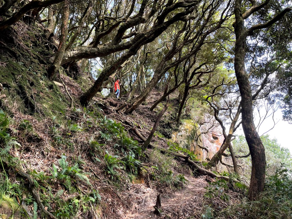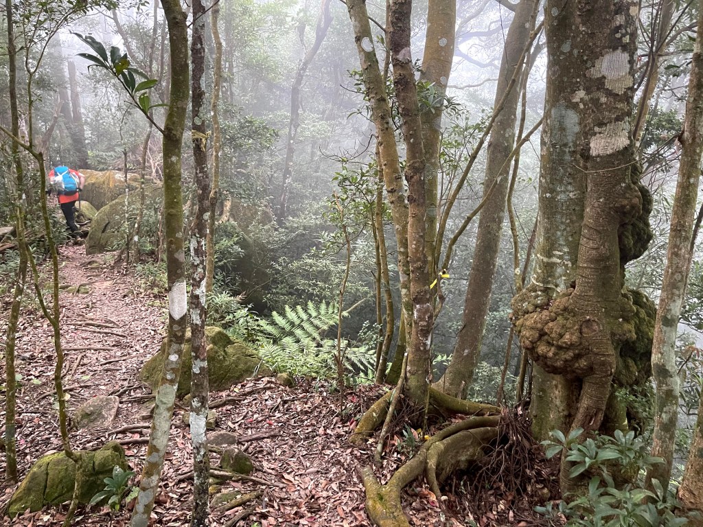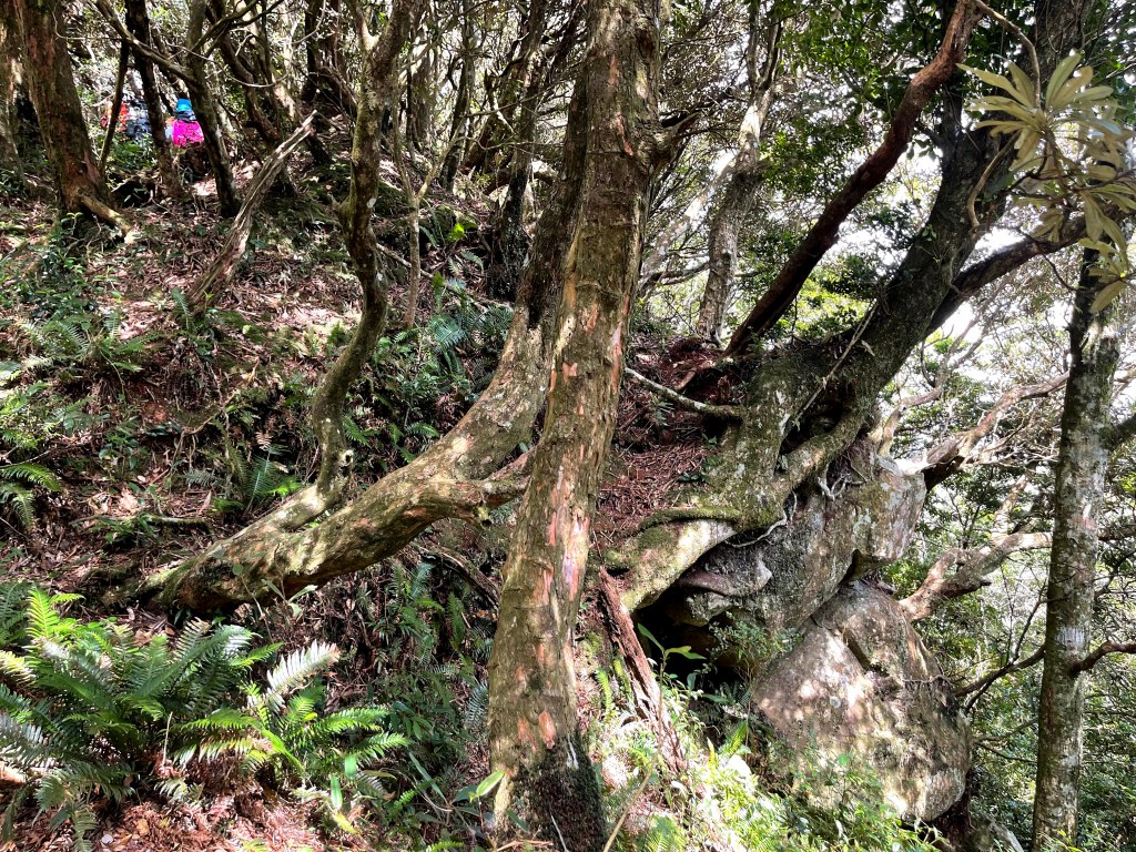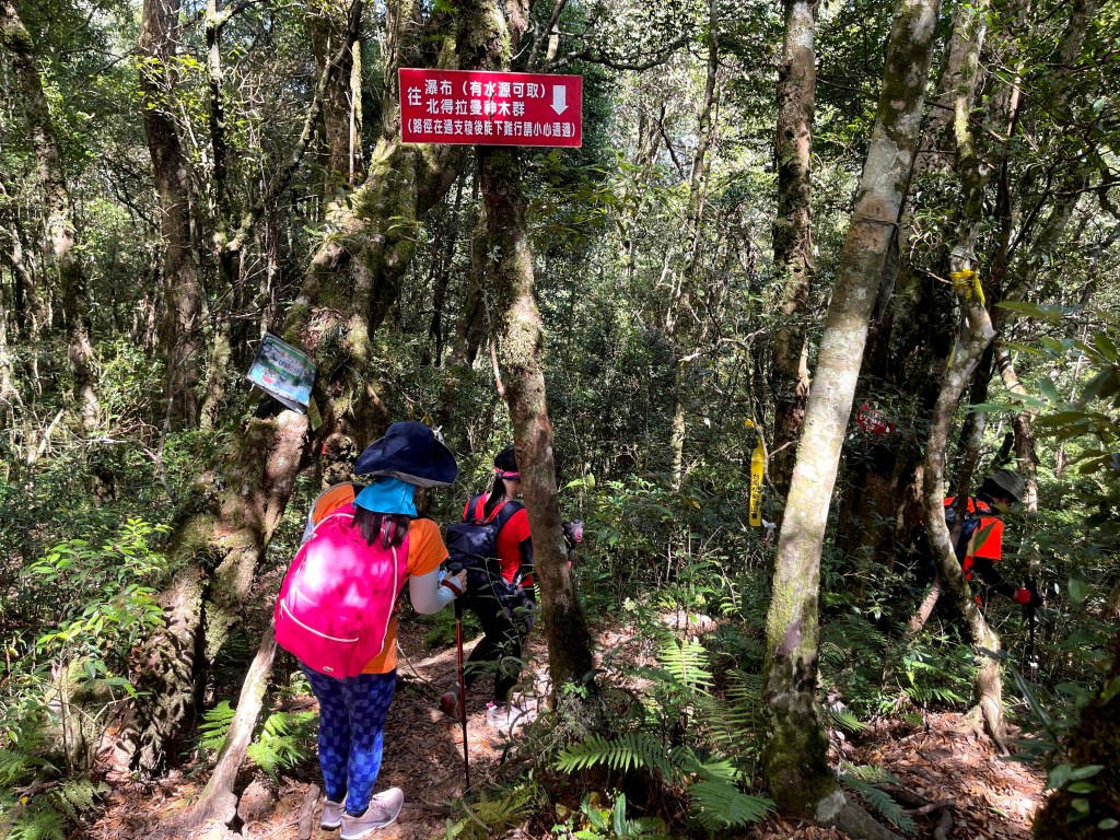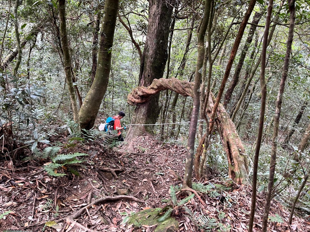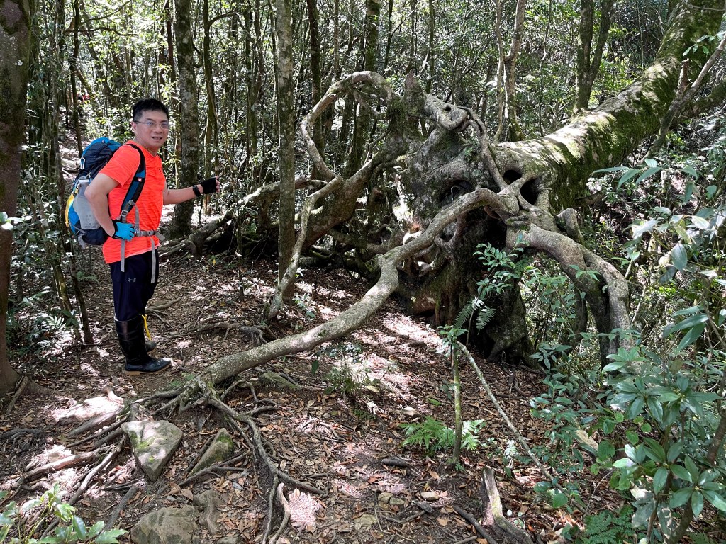 由神木一直陡上到北得拉曼神木區岔,有1.5K的距離且要由海拔950m拉拔到海拔1500m,這一段路徑不算難走但就是陡峭,因為Smile與我已經走過2次,感覺熟悉就比較覺得沒有第一次爬的辛苦感受。來到北得拉曼神木區岔後,往右下走可以去北得拉曼神木區,不取,我們在此稍微休息一下後,就直接左上往內鳥嘴山走,由此抵內鳥嘴山的距離有1.2K,海拔要爬升250m的高度。