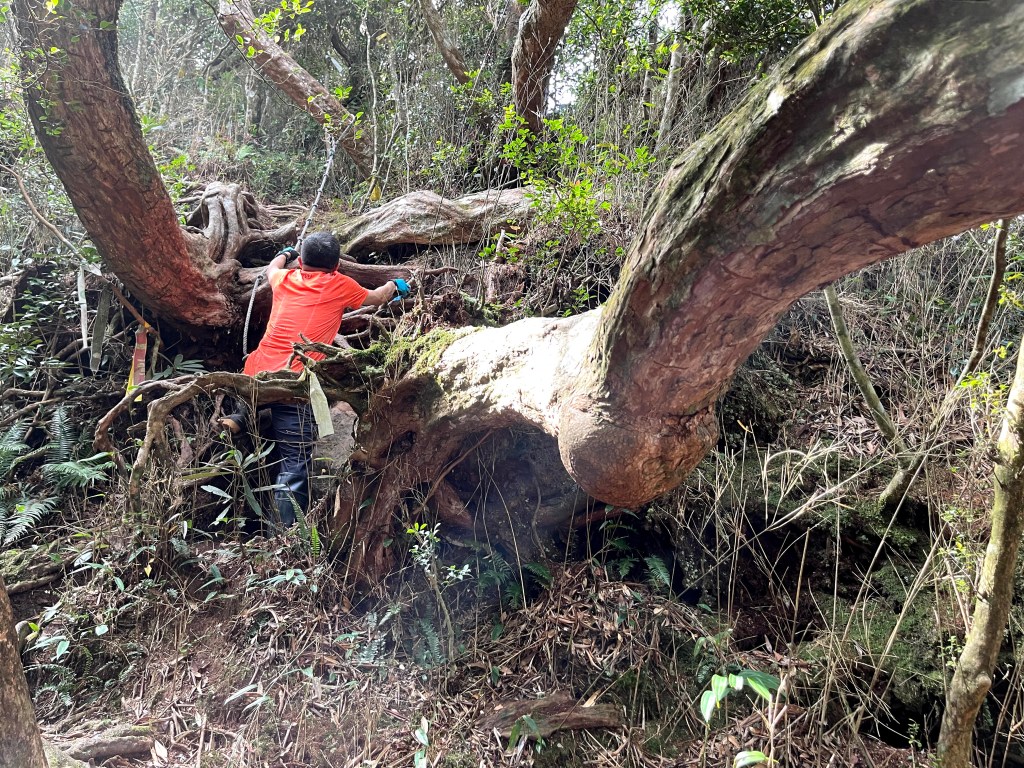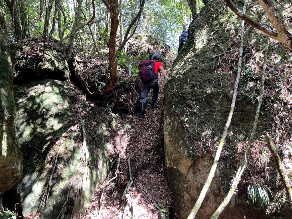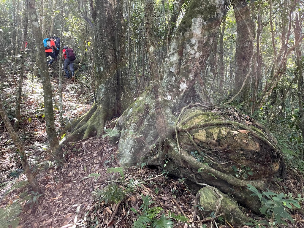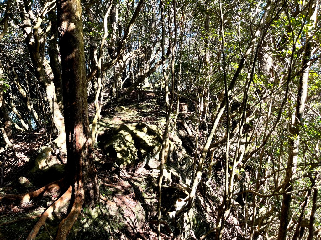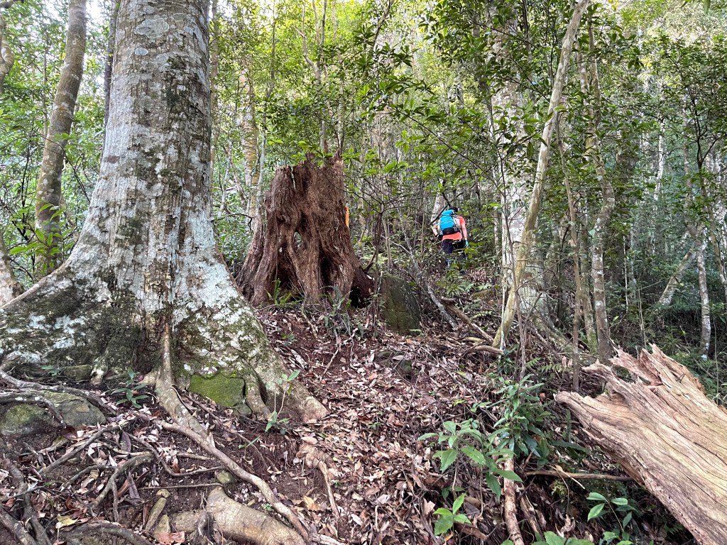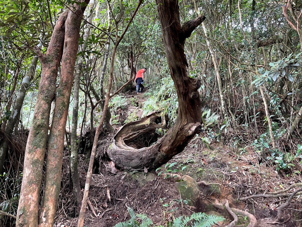 由神木一直陡上到北得拉曼神木區岔,有1.5K的距離且要由海拔950m拉拔到海拔1500m,這一段路徑不算難走但就是陡峭,因為Smile與我已經走過2次,感覺熟悉就比較覺得沒有第一次爬的辛苦感受。來到北得拉曼神木區岔後,往右下走可以去北得拉曼神木區,不取,我們在此稍微休息一下後,就直接左上往內鳥嘴山走,由此抵內鳥嘴山的距離有1.2K,海拔要爬升250m的高度。