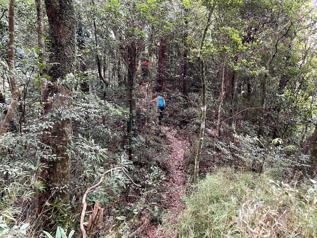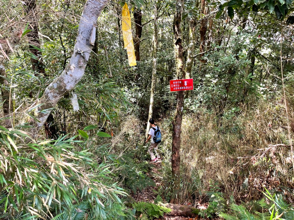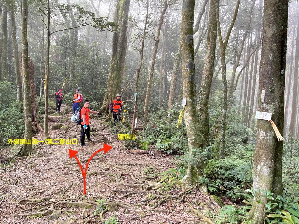 抵達外鳥嘴山時,已經是下午4點,此時大伙應該要積極的快走下山吧?結果,單單在稜線上有耽擱的不少時間,所以一路下山走到蓮包山時,已經是下午5點半,這中間有些岔路是可以直接下山回到水田林道的,所以如果要當作是撤退路線,一定要事先做好功課!