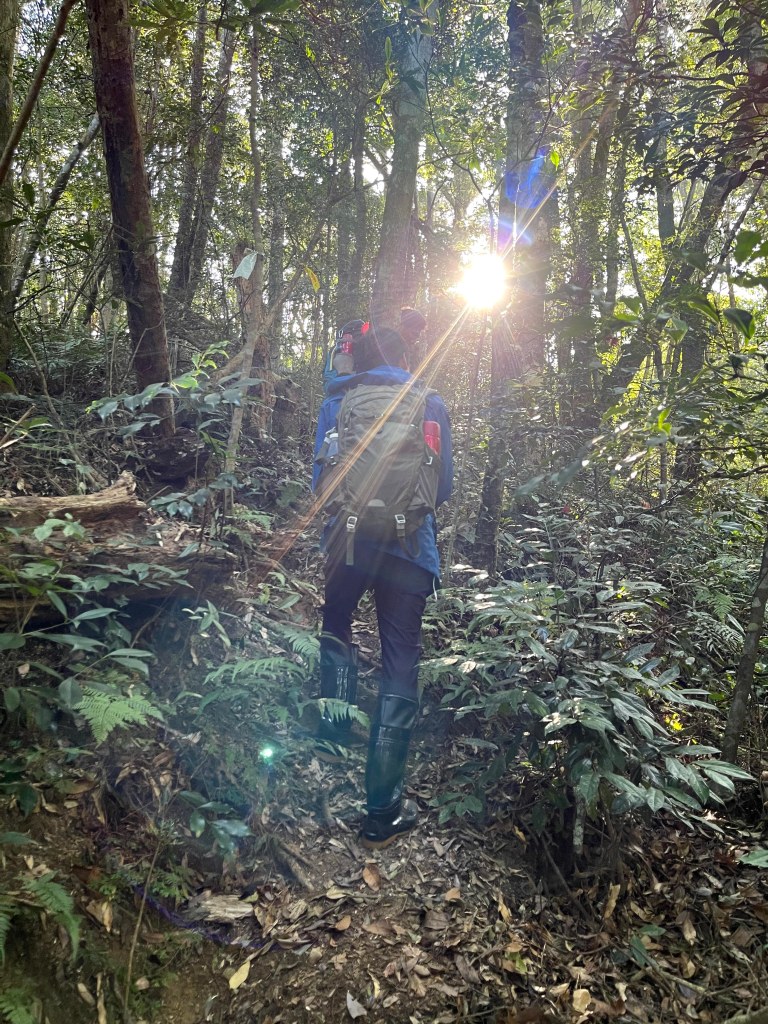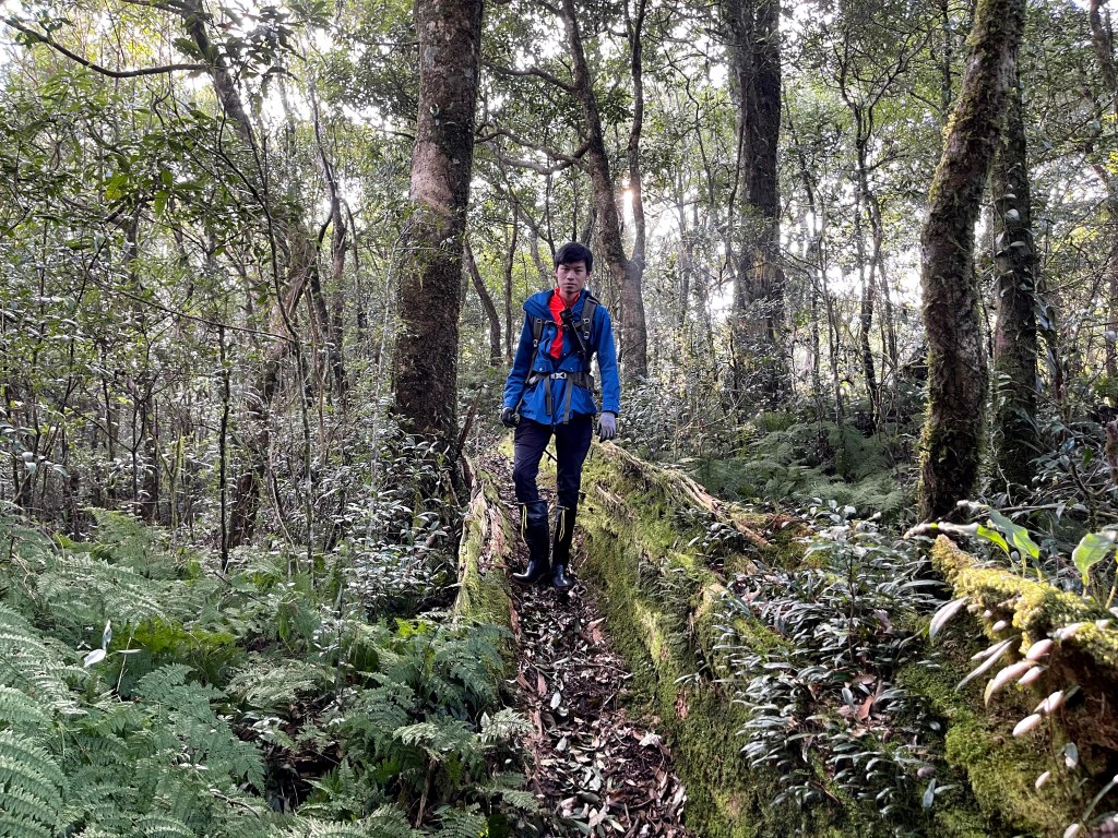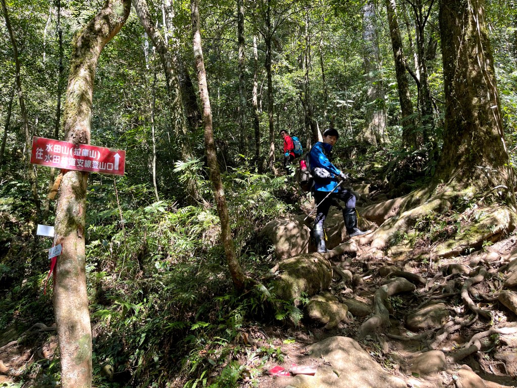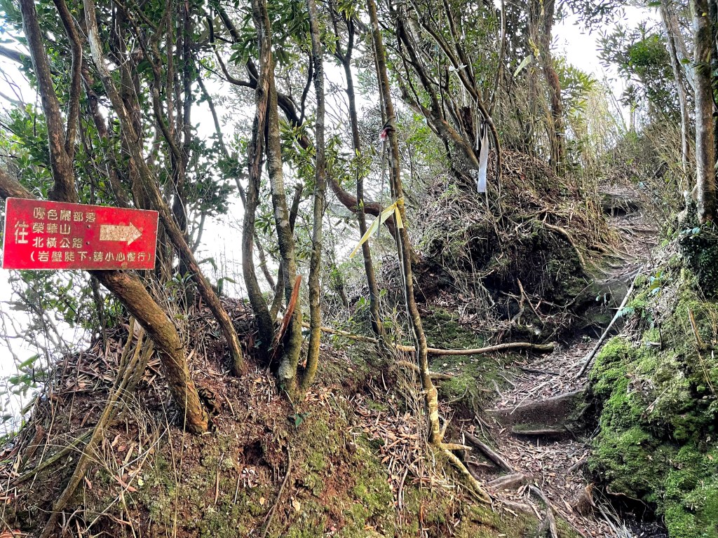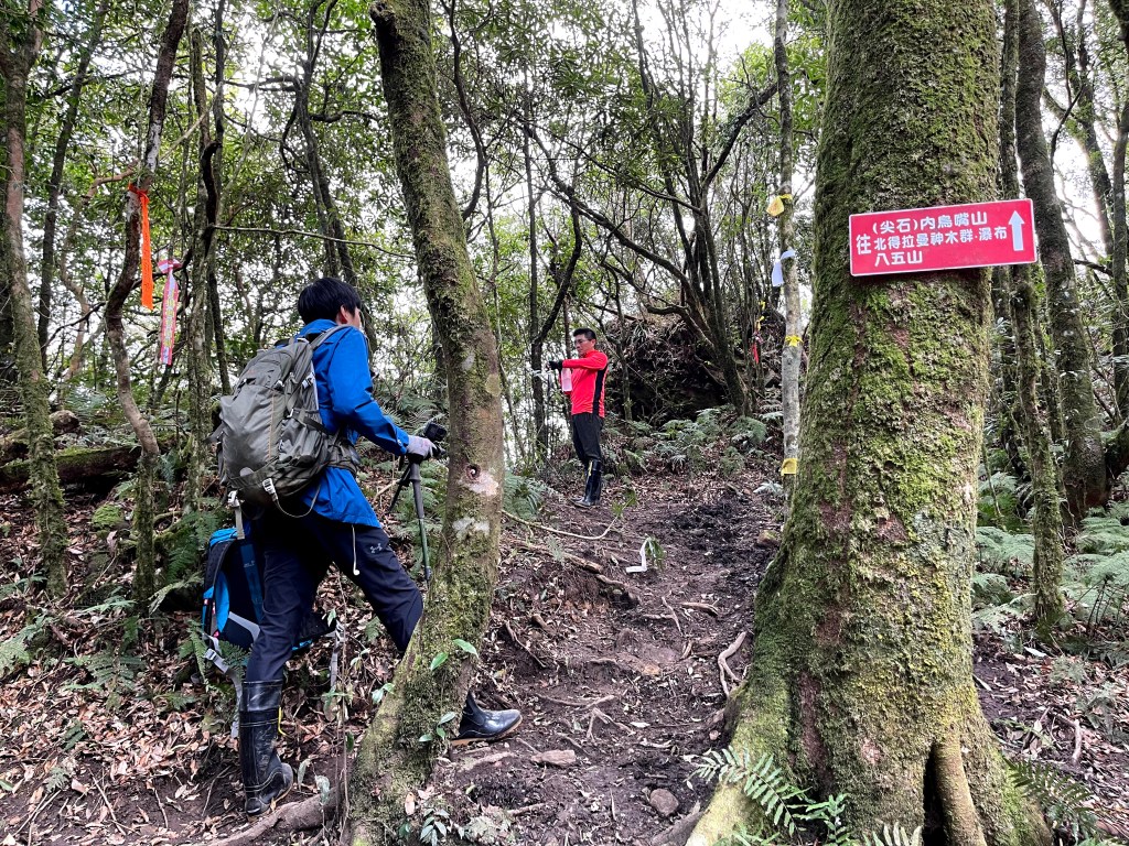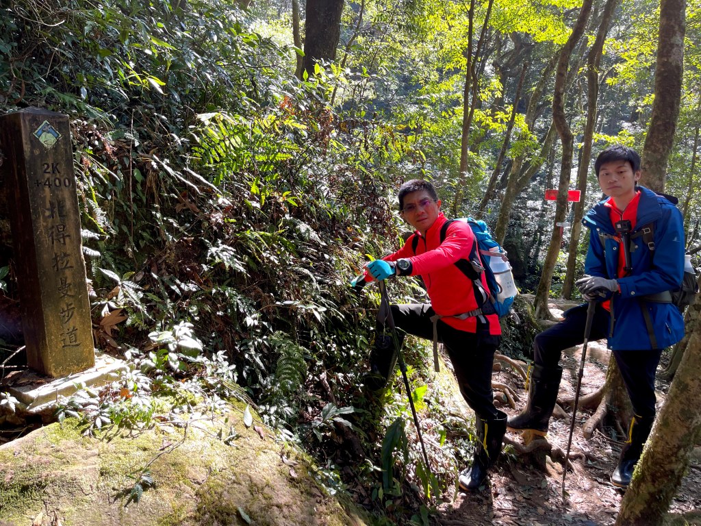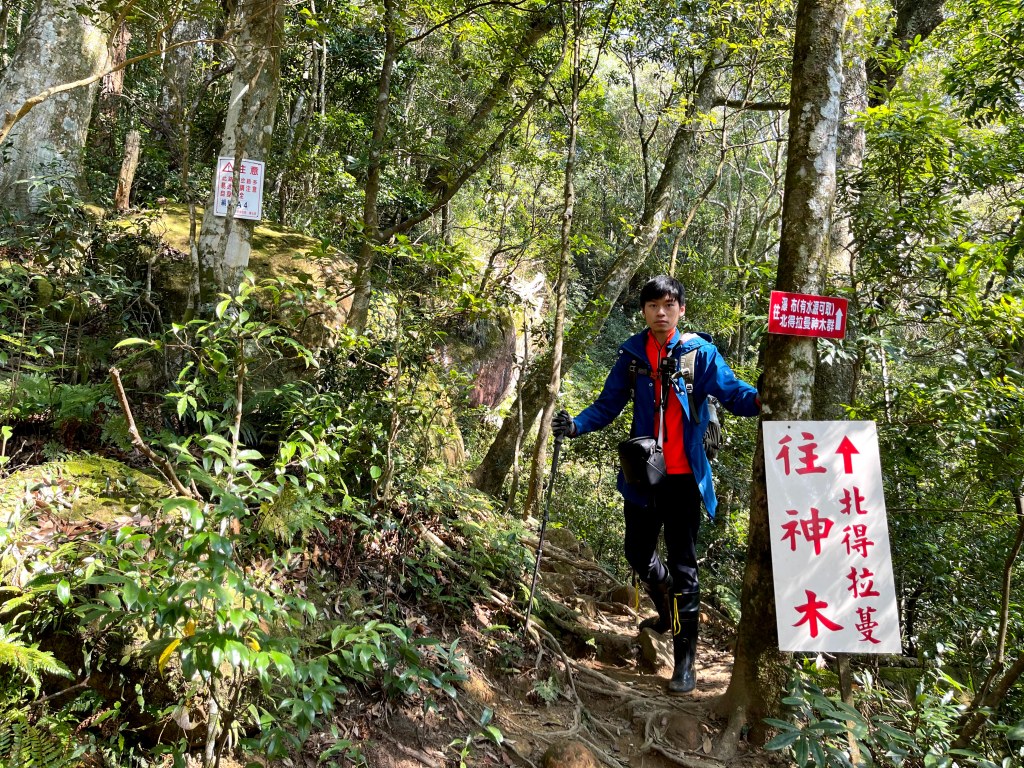 來到北得拉曼神木區岔後,往右下走可以去北得拉曼神木區。今天,我們的目的就是要讓Steven可以到神木區空拍,因此,往右下走200m的距離來到北得拉曼步道1.6K神木區入口。