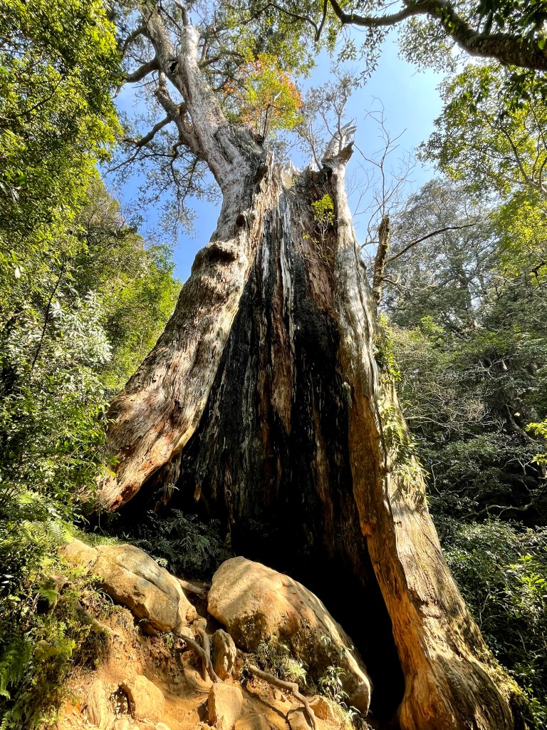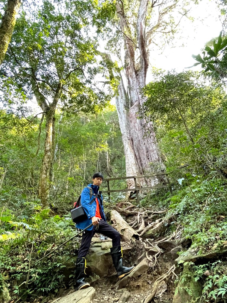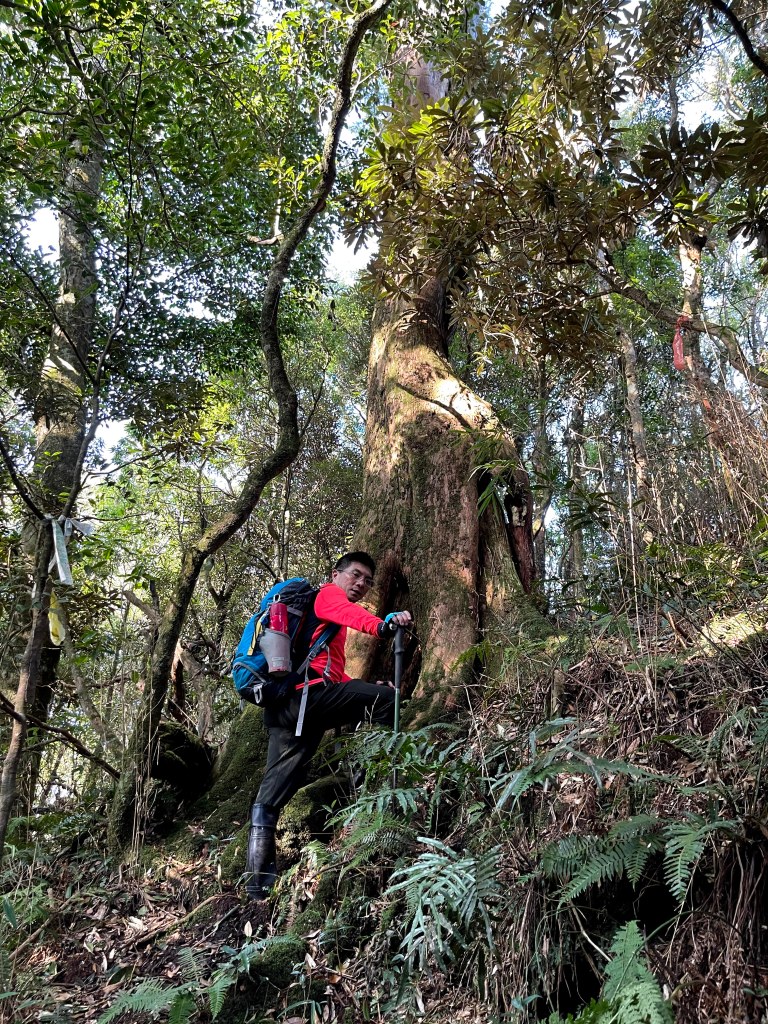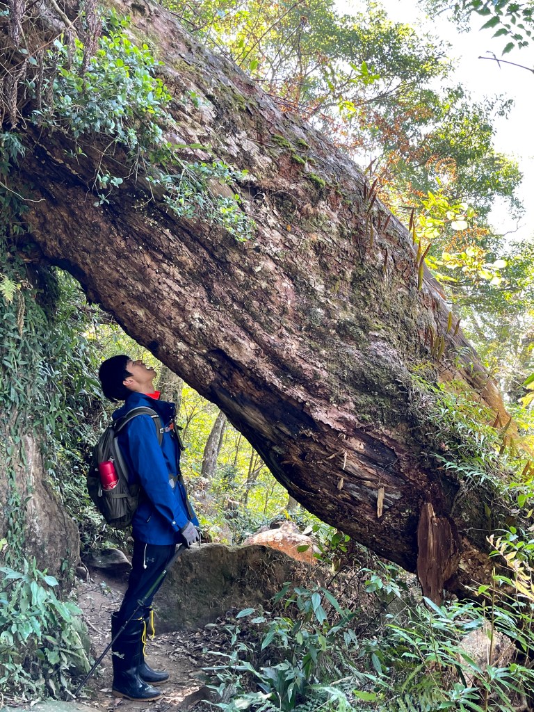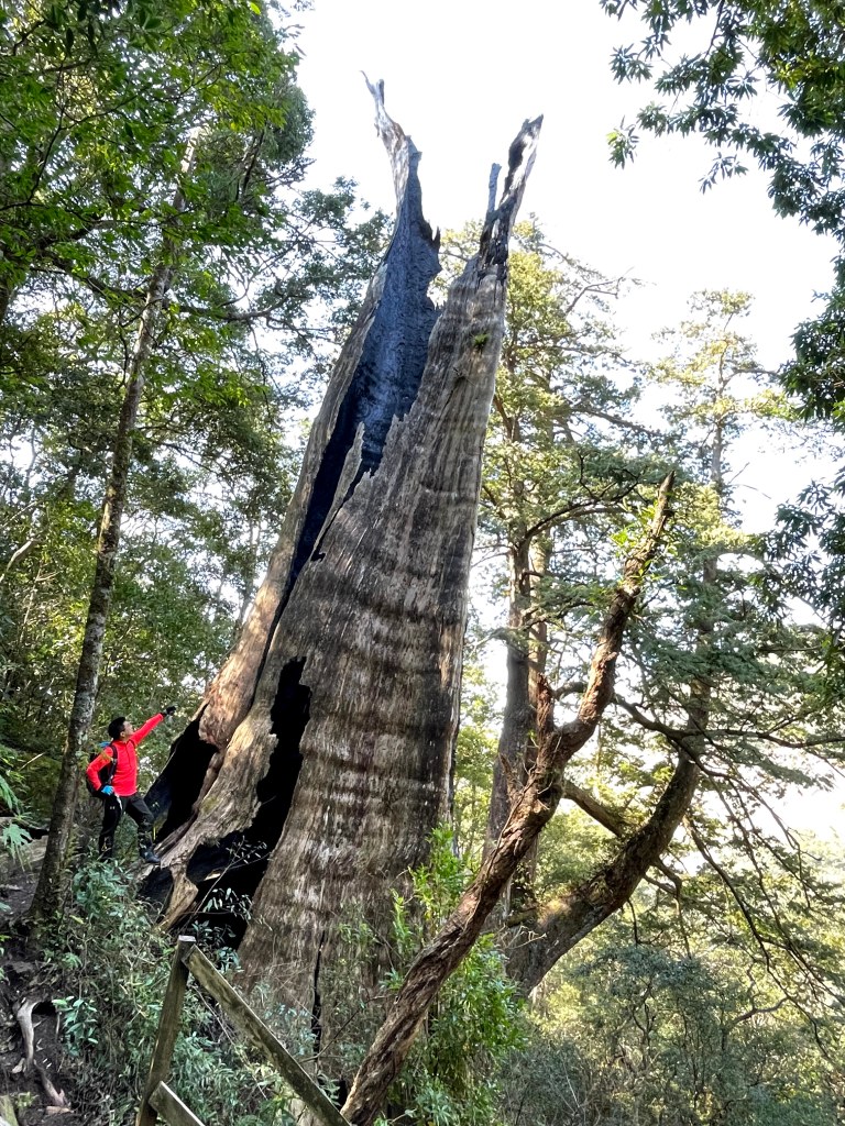 我們以逆時針方向走,依序經過4號神木、3號神木、2號神木,最後再來到1號神木,也是最壯觀的神木!Steven在此進行空拍後,就開始往內鳥嘴山走,由此抵內鳥嘴山的距離有1.3K,海拔要爬升250m的高度。