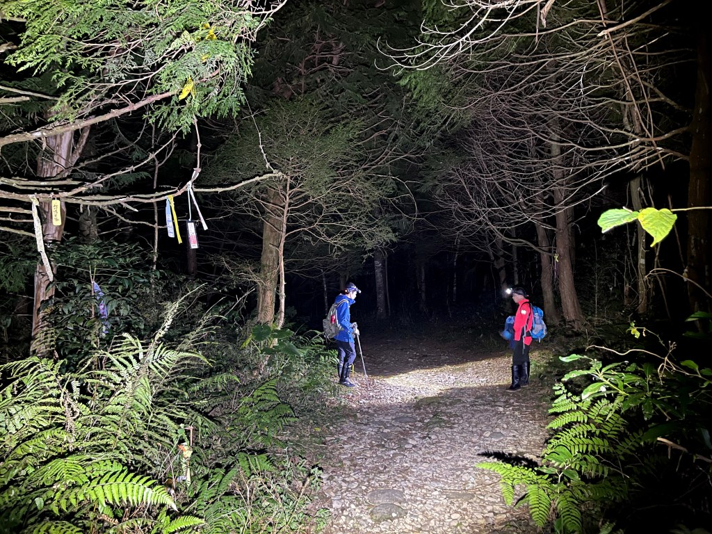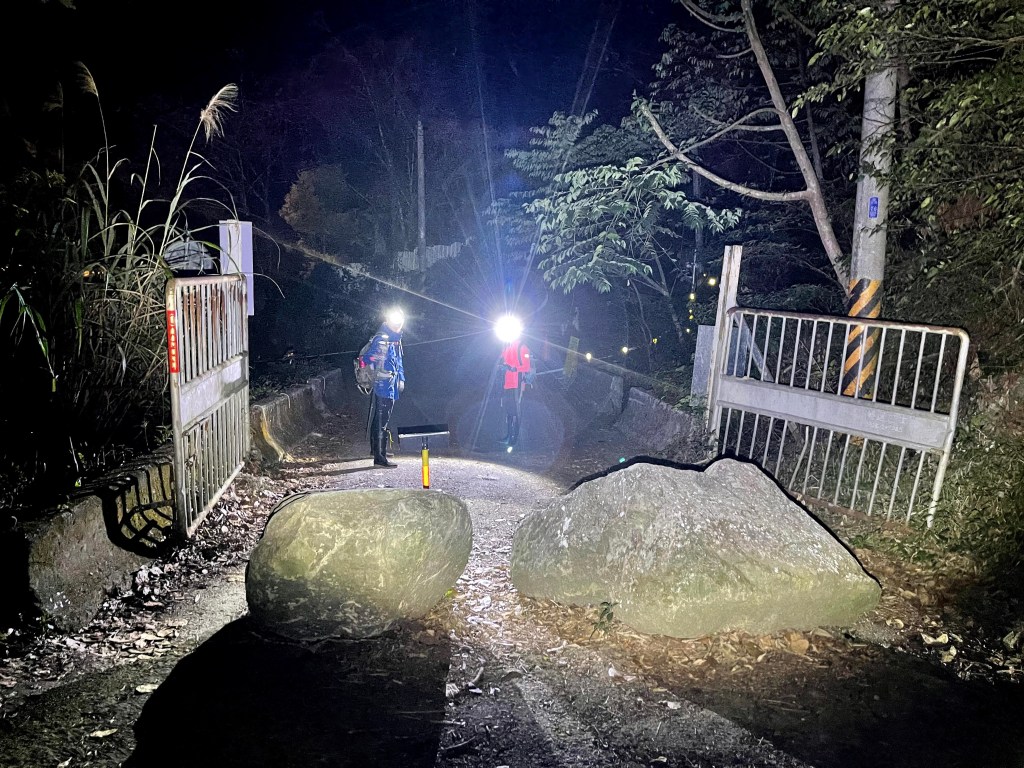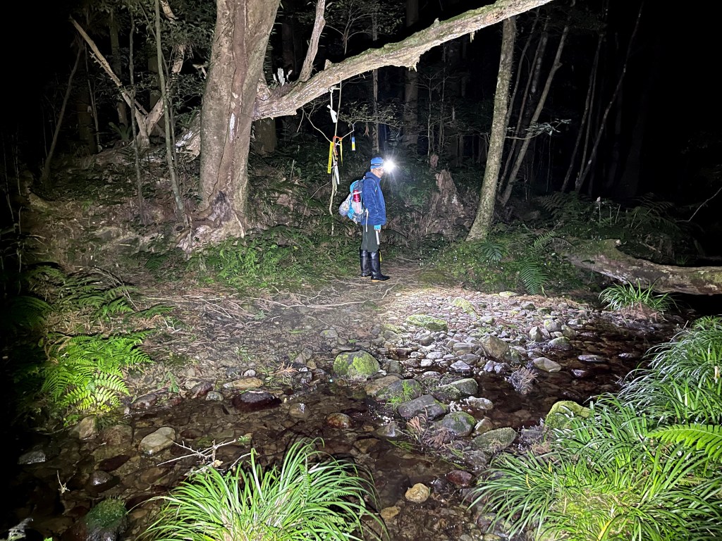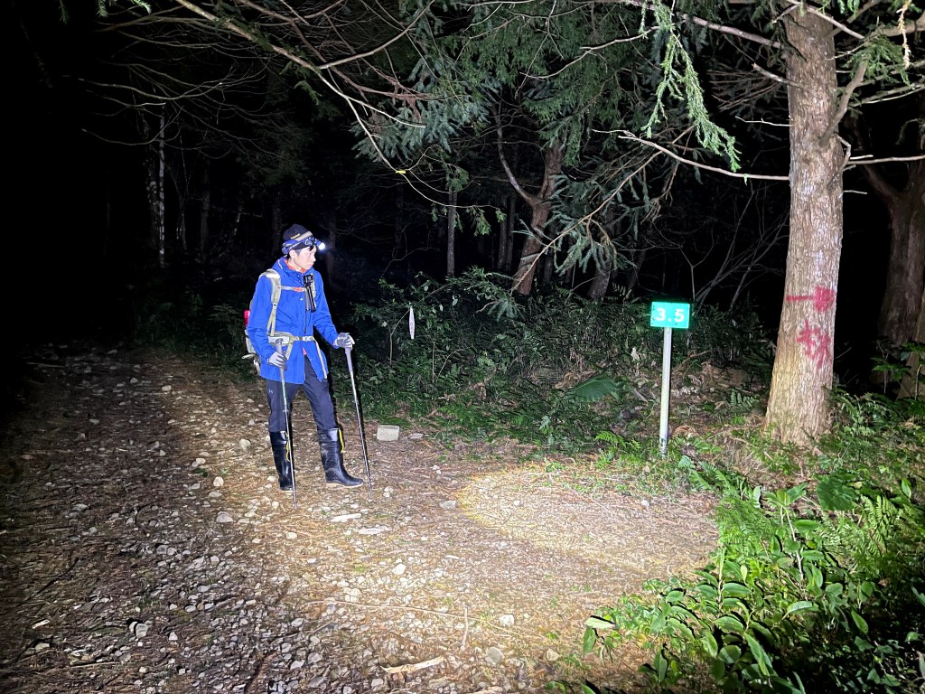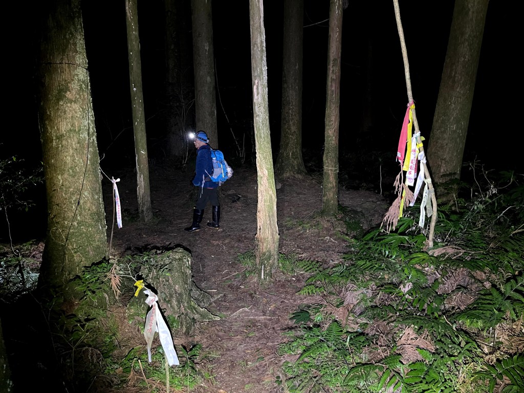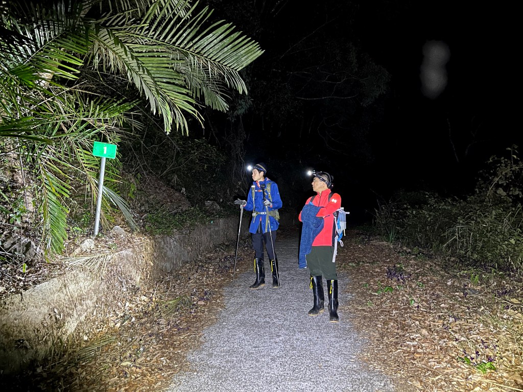 由那結山回程,再走一次倒N路徑回到三岔路口,各人取回各自的背包,繼續往下接上外鳥嘴山與林道岔,也就是等高線圖中的外鳥嘴岔,這時天色已黑,因此就放棄往外鳥嘴山走,直接往水田林道方向,再次經過貴妃山岔、九芎奇樹,而接上水田林道盡頭的3.6K,再沿著水田林道走3.6K約一小時後回到停車場。
