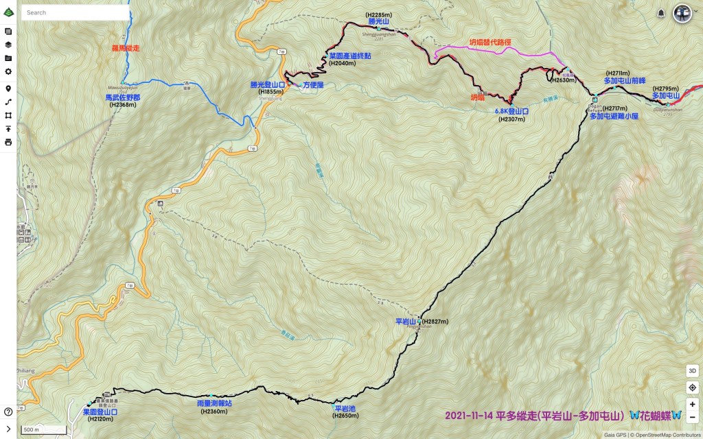 我們這一天的平多縱走路徑為: