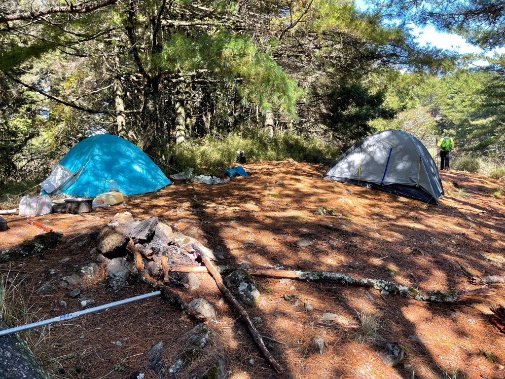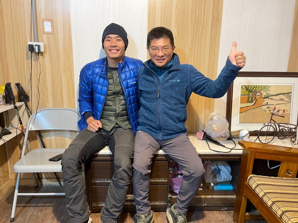 這一晚,在方便屋,也巧遇Hiker CP,他凌晨要出發去中央尖連走中央山脈,預計要14天內完成?之前有看過17天完成而且中途有補給的紀錄。Wow!14天獨攀且無補給?我們四人問題不斷,CP非常有耐性且熱忱,幾乎把他的背包全翻出來,一一解釋給我們看,我們四人真是聽到嘆為觀止啊!為了減輕重量所有裝備的巧思想到極盡,給我們免費上了寶貴的一課!