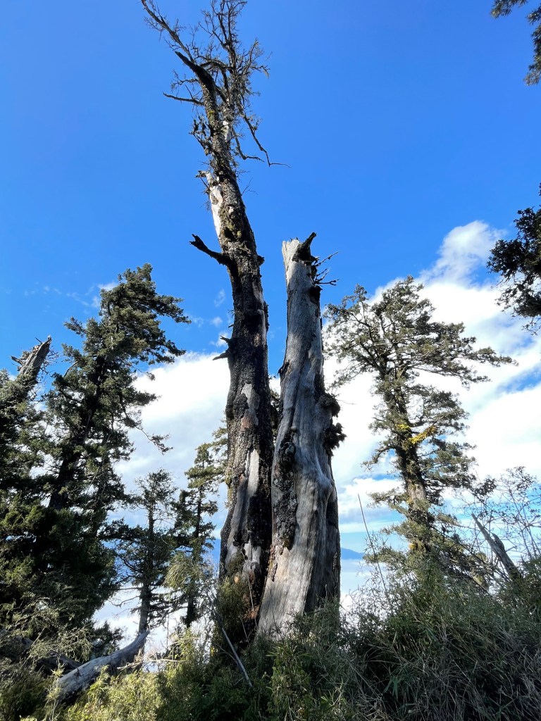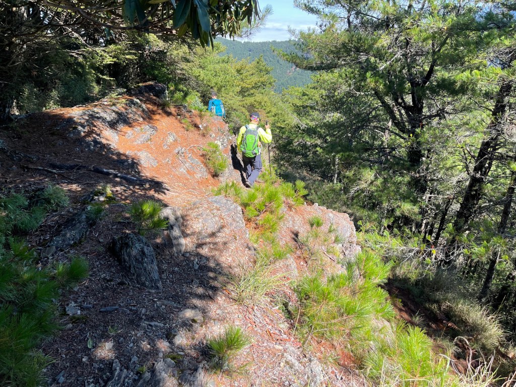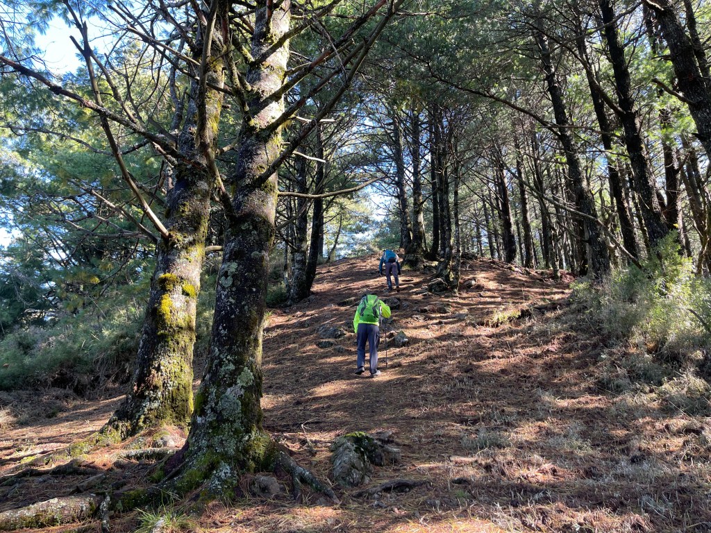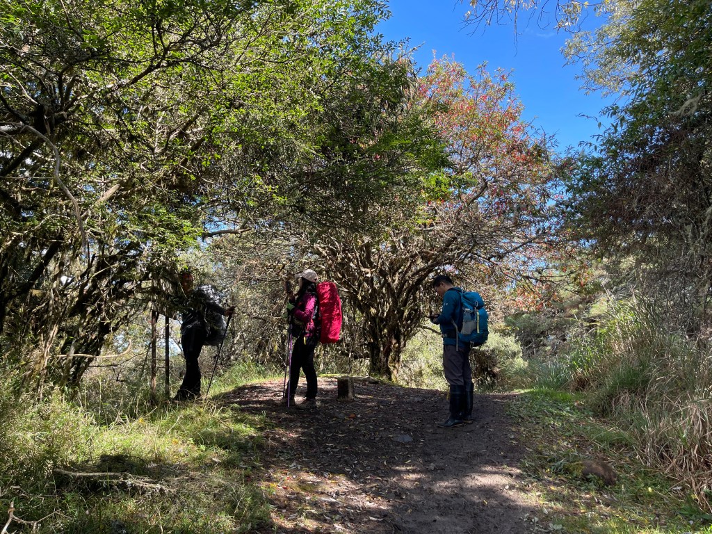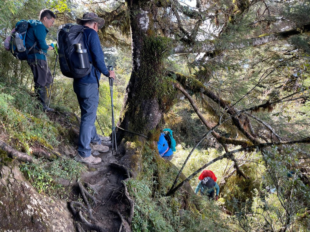 今日起登前,天氣預報為陰天,沒想到,整天艷陽高照!這是一趟超優質之旅!除了由果園登山口到平岩山之間比較原始之外,一半以上的路徑都在防火巷或松針步道上,兼具南湖、中央尖環侍在右,是有點辛苦但不太累的行程!對了!平多縱走要申請入園證還有入山證!