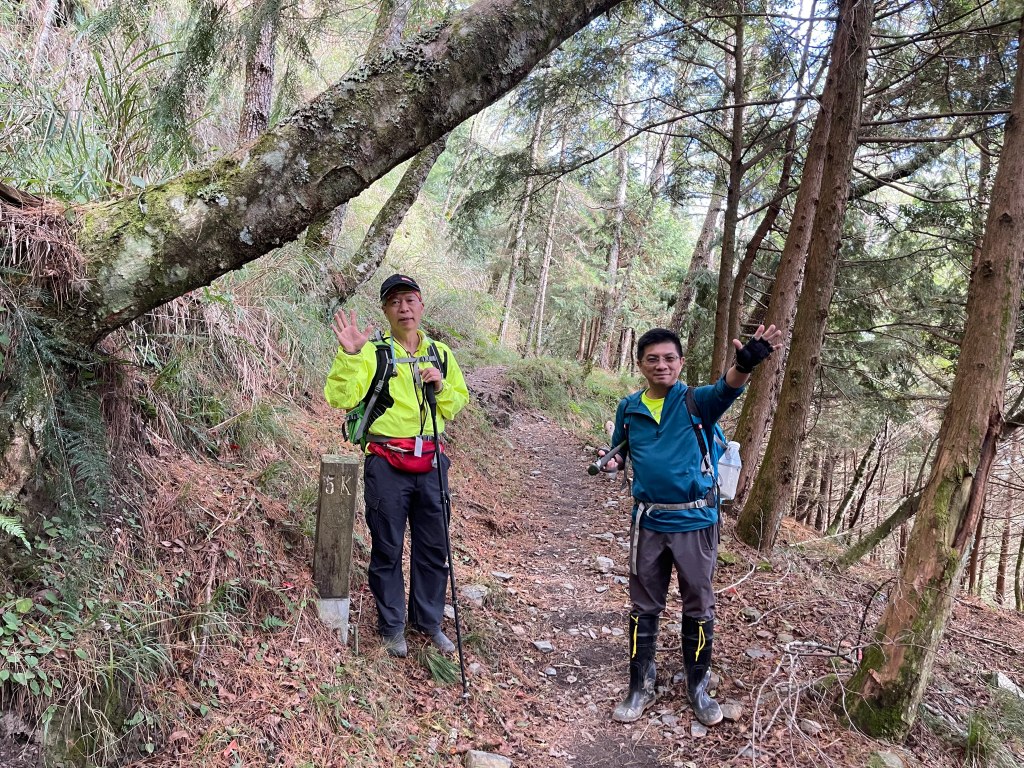 另外,起登點的果園登山口,這裡的停車位並不多,三、四台就很滿,我們這一天起登時共停了5台車,是因為其中的4台車是同一團的山友,因此,他們的車可以密集的停在一起,如果各自開車上來,也許要讓出一個位置當作迴車使用。