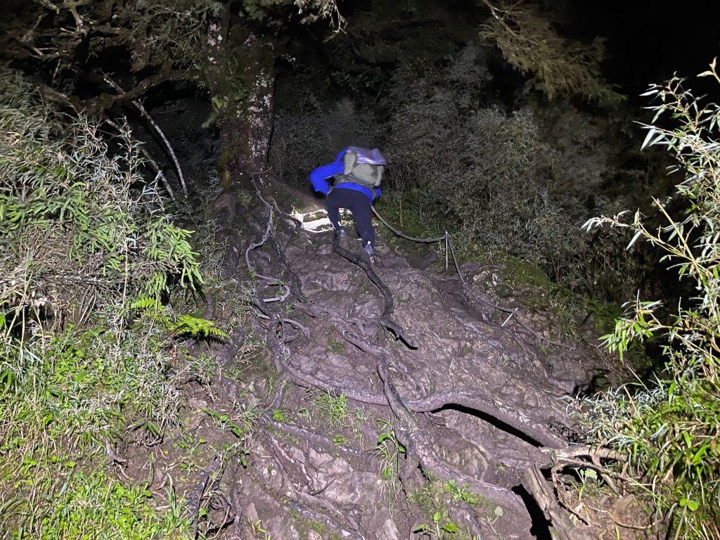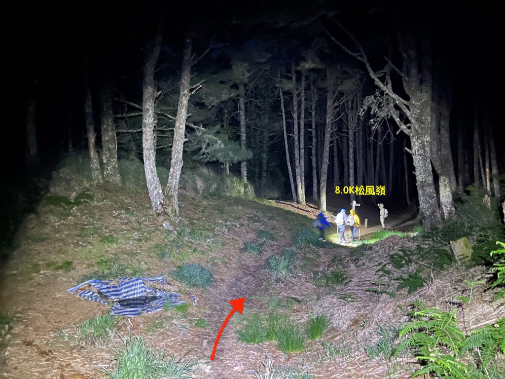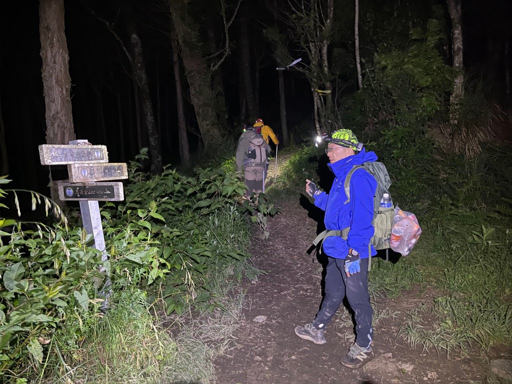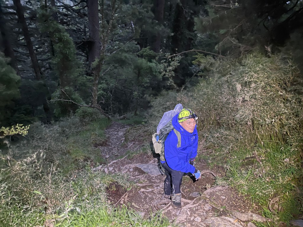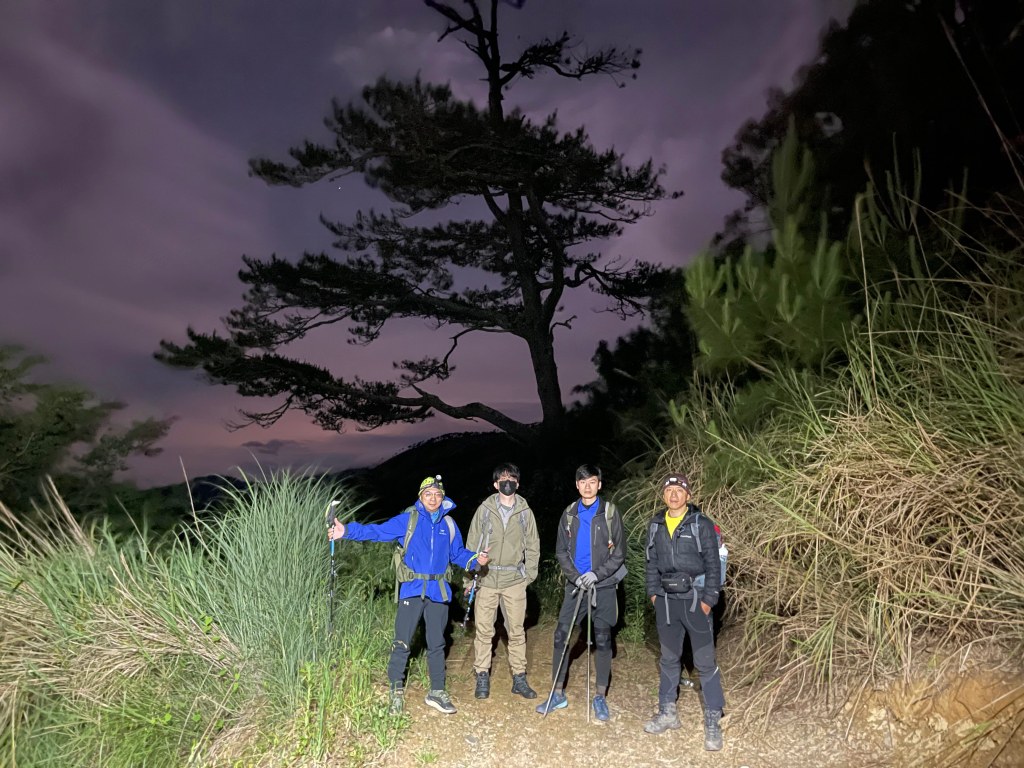 接著的回程,Smile的速度比較慢一些,所以,都是嘉鴻與David一路在前衝,再到特定定點時等我們追上,抵達雲稜山莊時,天色還沒黑,但可預測的,接下來天黑後,速度一定會變慢一些,還好,四個人的耐力都不錯,就是能一直走。