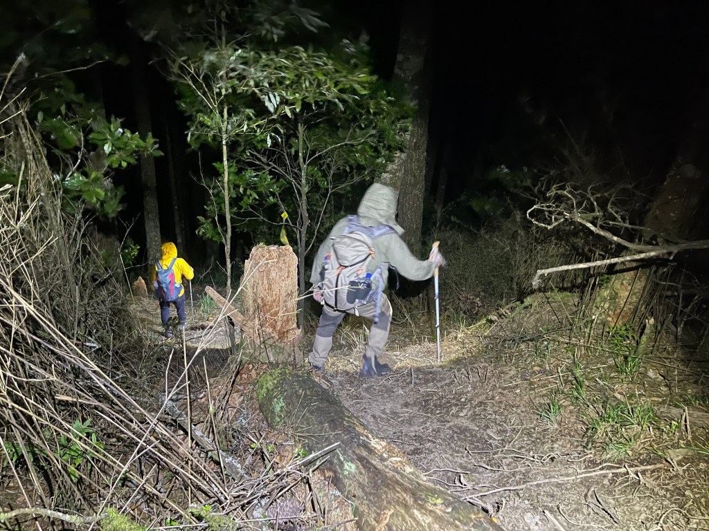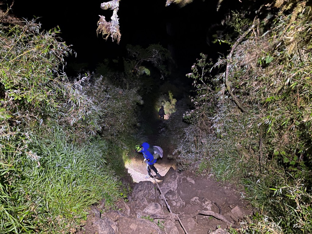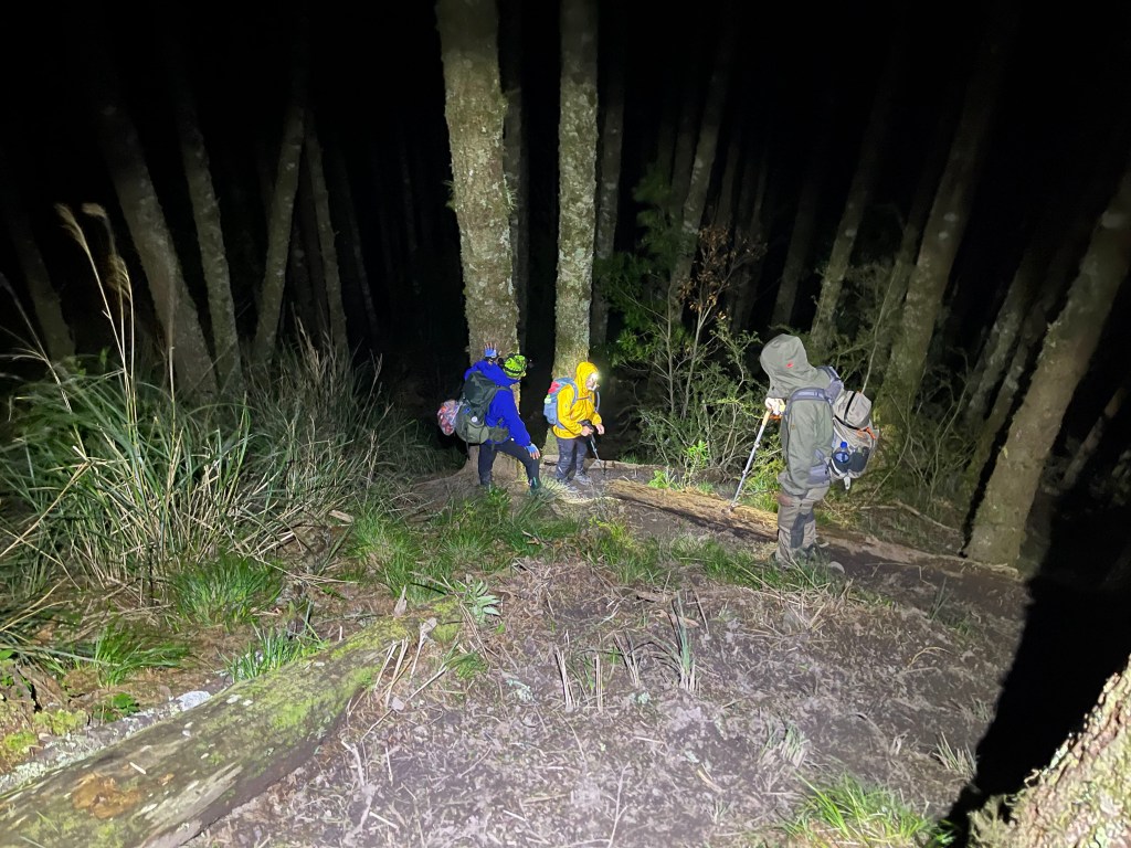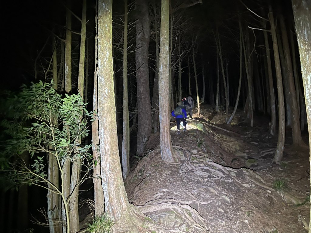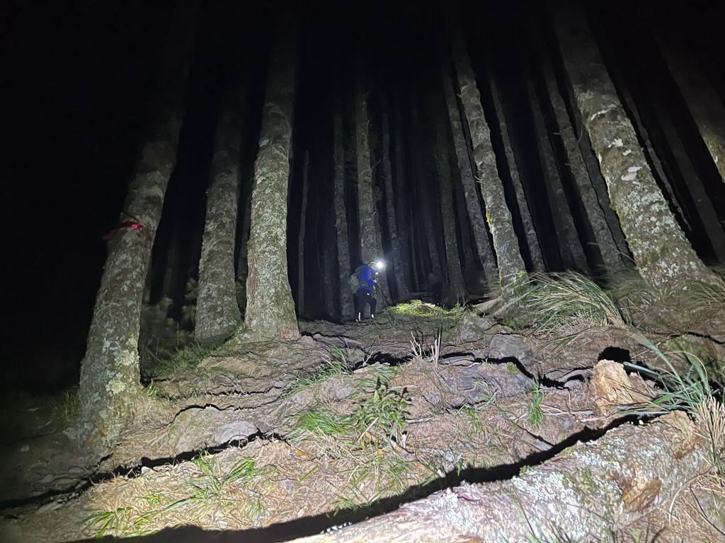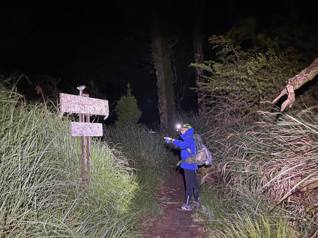 接著的回程,Smile的速度比較慢一些,所以,都是嘉鴻與David一路在前衝,再到特定定點時等我們追上,抵達雲稜山莊時,天色還沒黑,但可預測的,接下來天黑後,速度一定會變慢一些,還好,四個人的耐力都不錯,就是能一直走。
