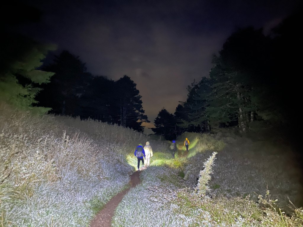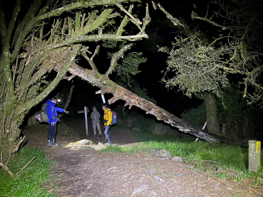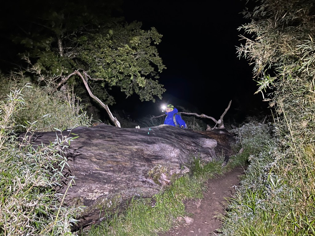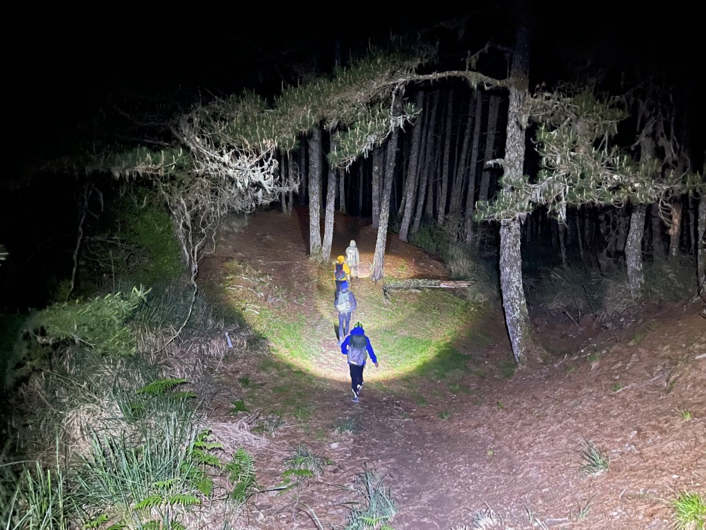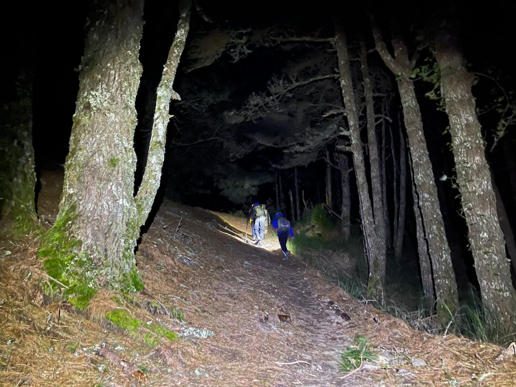 接著的回程,Smile的速度比較慢一些,所以,都是嘉鴻與David一路在前衝,再到特定定點時等我們追上,抵達雲稜山莊時,天色還沒黑,但可預測的,接下來天黑後,速度一定會變慢一些,還好,四個人的耐力都不錯,就是能一直走。