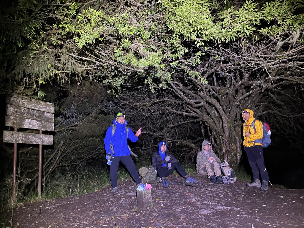 起登前一天下午,我們五個就先到勝光登山口的方便屋休息,準備在午夜12點整起登,這之間就Smile一人睡不著覺,其他人都有得到適當的休息。起登時,請方便屋的郭先生幫我們接駁到菜園登山口,目前由勝光登山口到菜園登山口之間,原來的水泥路徑已經完全都變成是爛泥,請接駁車來接駁會比自己走來的輕鬆很多!