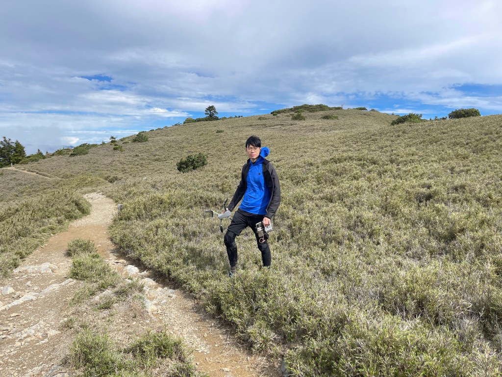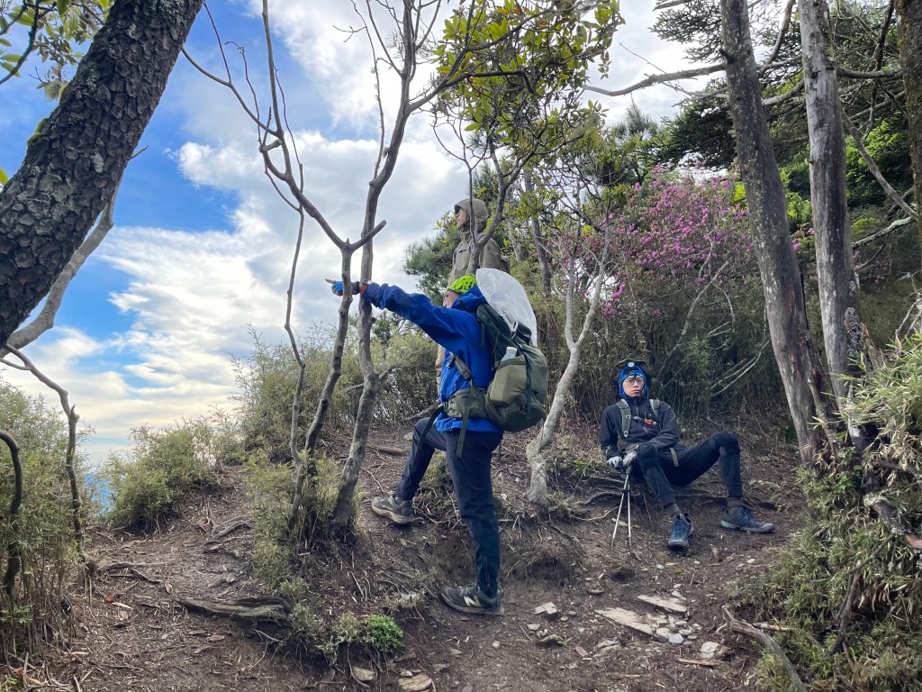 今天,David與嘉鴻的狀況超好,所以,當Smile與我(Gosen)還沒有到達下一個點時,兩人就會自行先開拍起來,因此,當我們離開17.2K後,David就沒有等待我們,逕自直接往前走去19K的南湖北山岔,先跑250m的距離去拍攝南湖北山,再退出回到南湖北山岔與我們會合。
